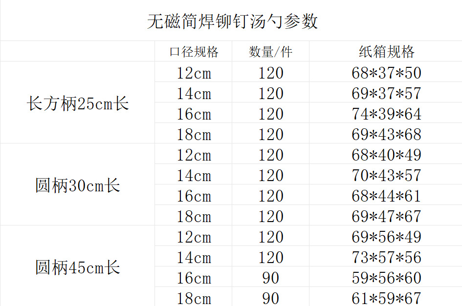 specifications: rectangular handle soup spoon [handle 25 long], round handle soup spoon [handle