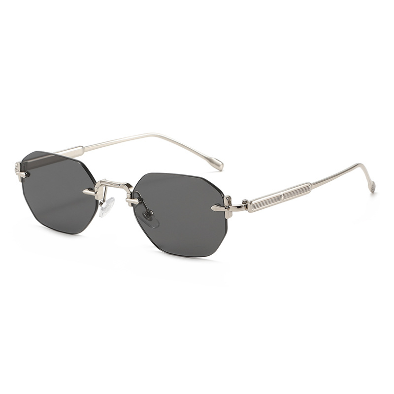silver frame, gray lenses