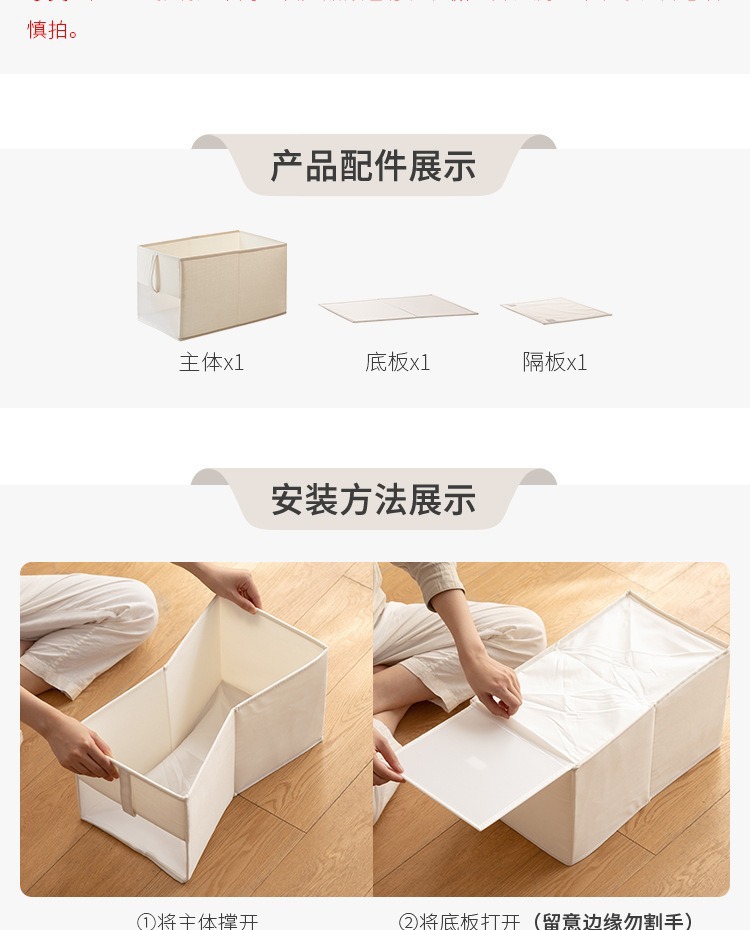 front window portable cotton and linen storage box [large size/short style] no partition板