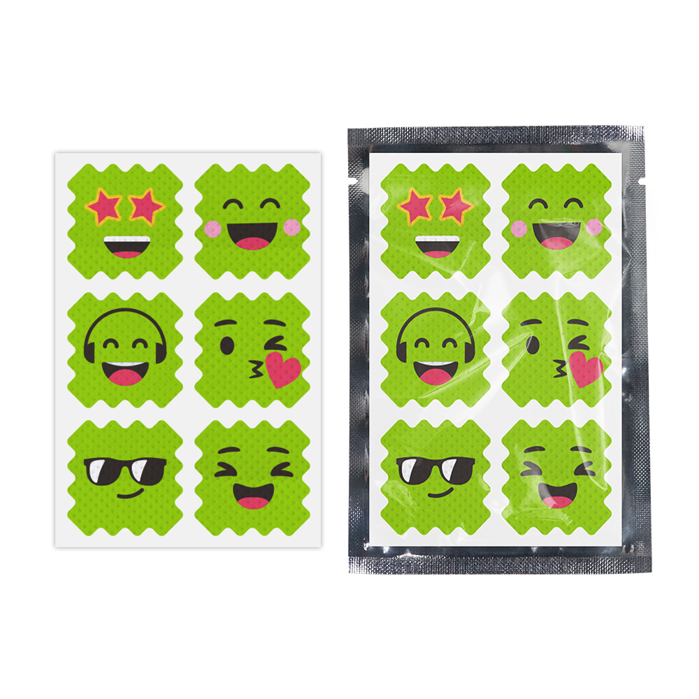 green smiling face style 6 stickers (1 piece into aluminum foil bag)