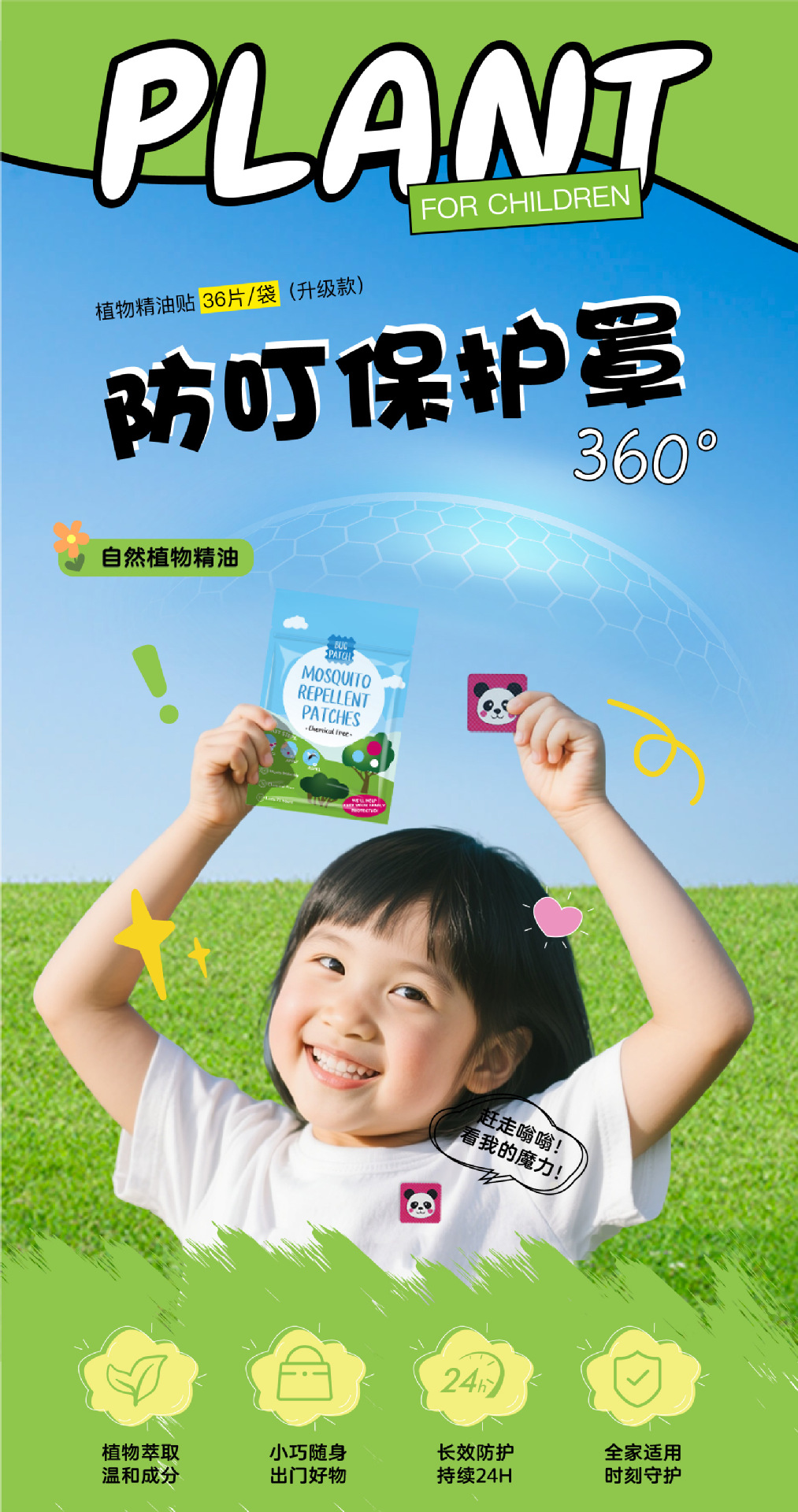 panda style 36 stickers (6 pieces into white chinese zipper bag)