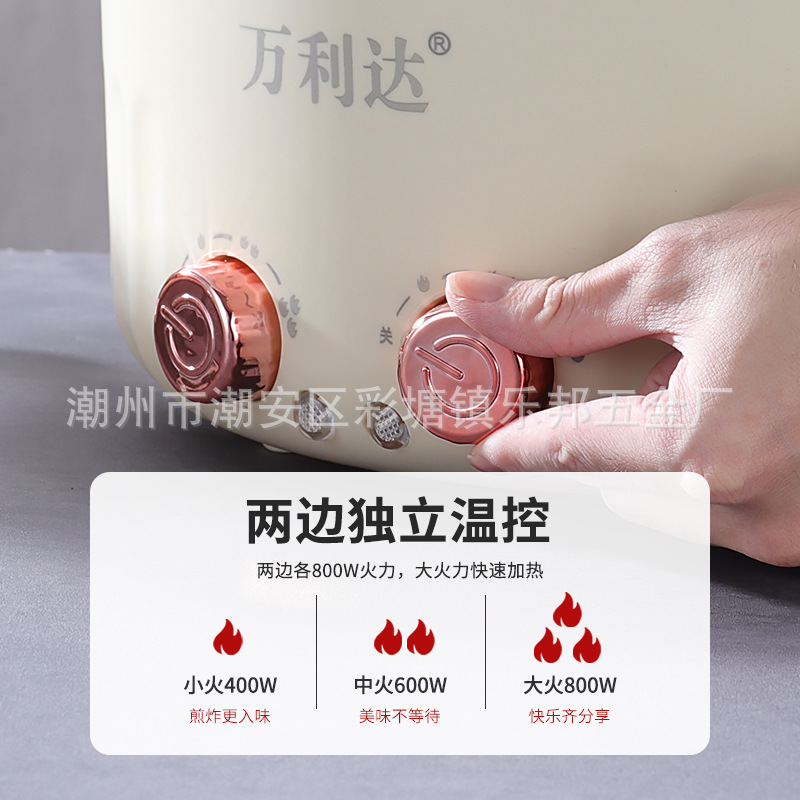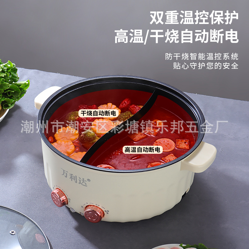 double temperature control two-flavor hot pot multi-functional household electric hot pot large capacity integrated dormitory electric caldron non-stick pan gift