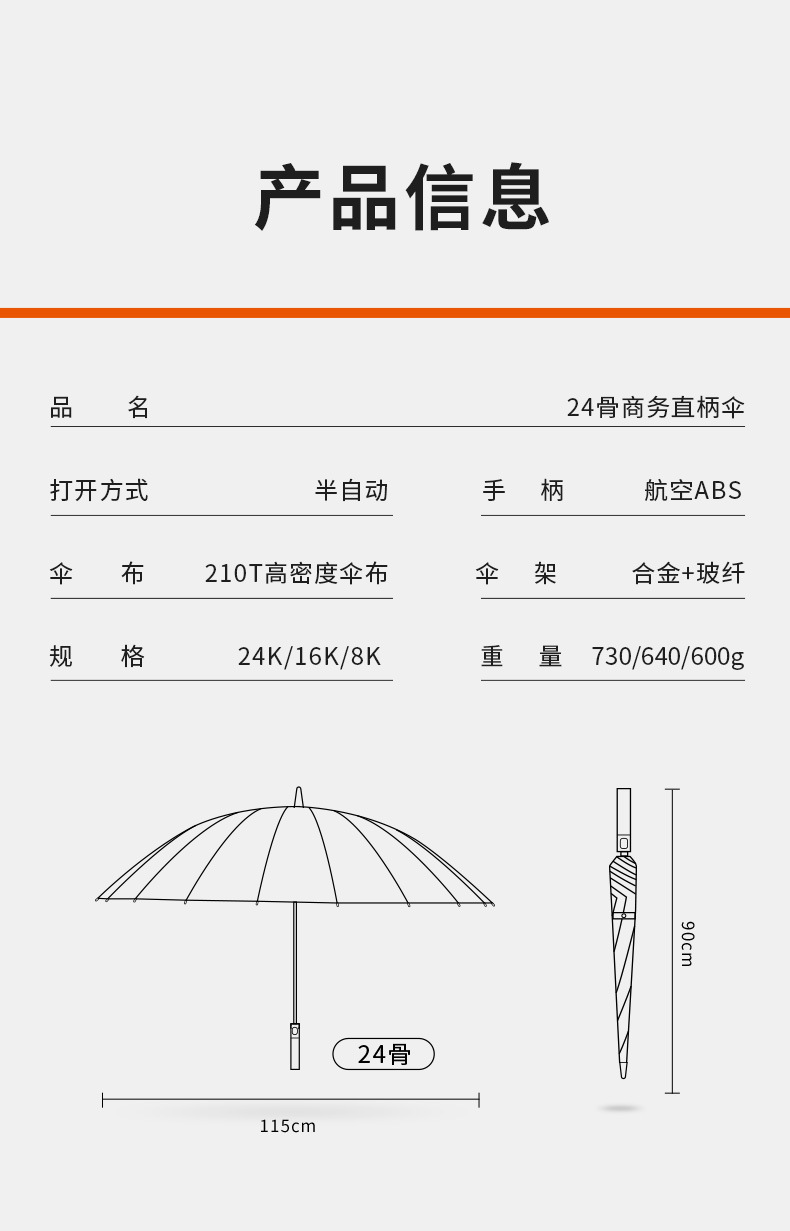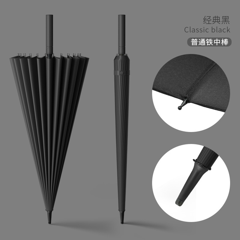 [ordinary iron umbrella rib] 24 ribs classic black-frosted handle