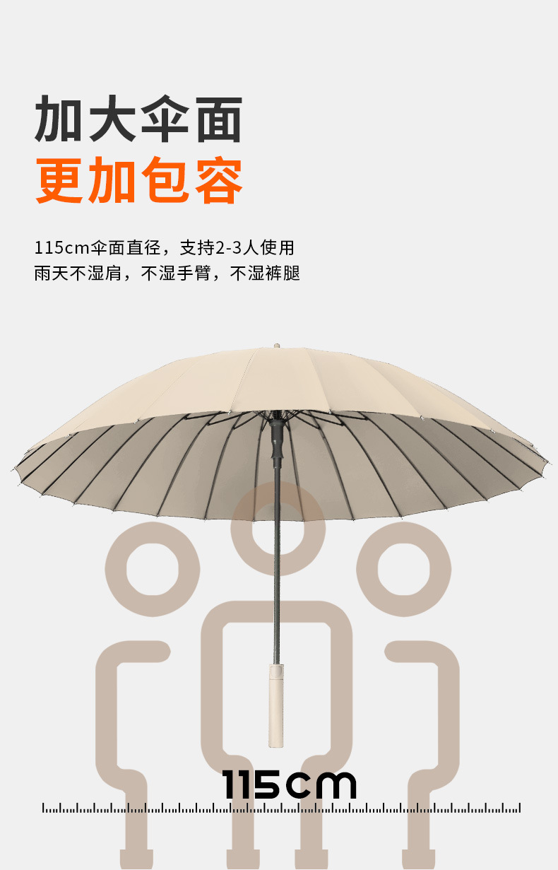 [upgraded fiber umbrella rib] 16-rib paulownia wood-frosted handle