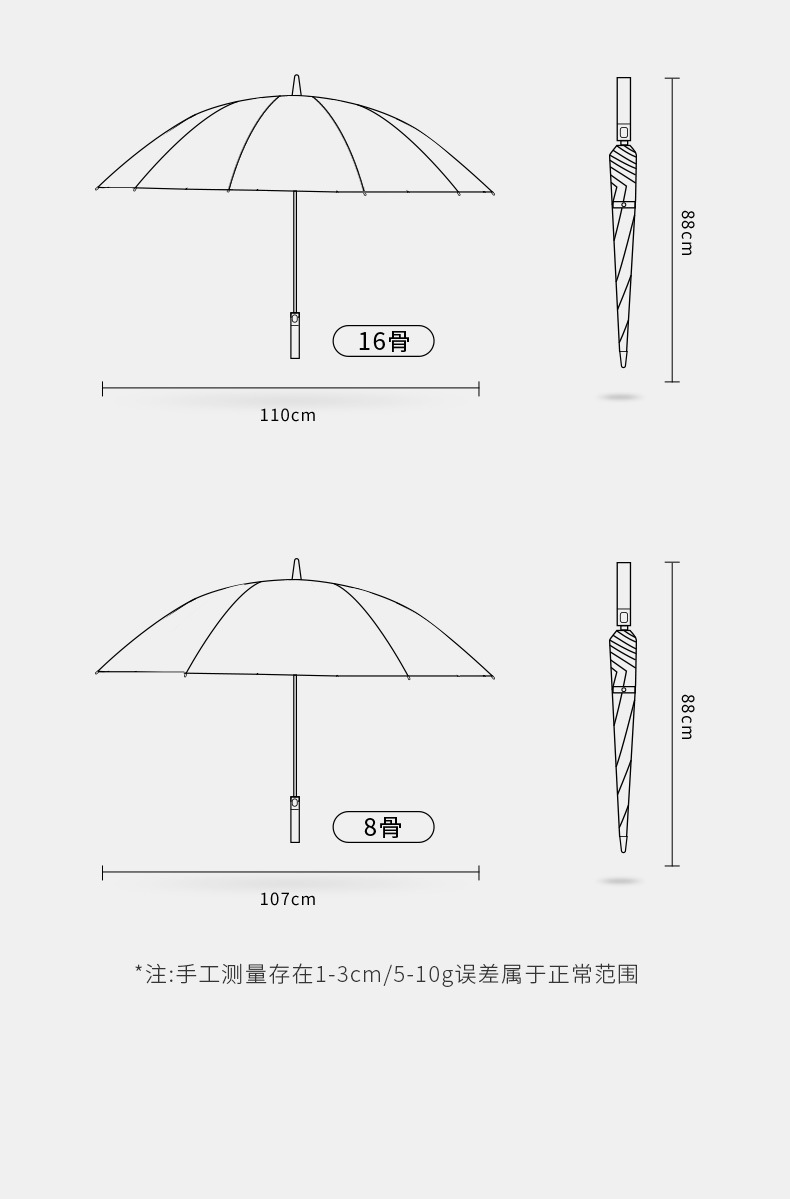 [upgraded fiber umbrella rib] 16 ribs gray-frosted handle