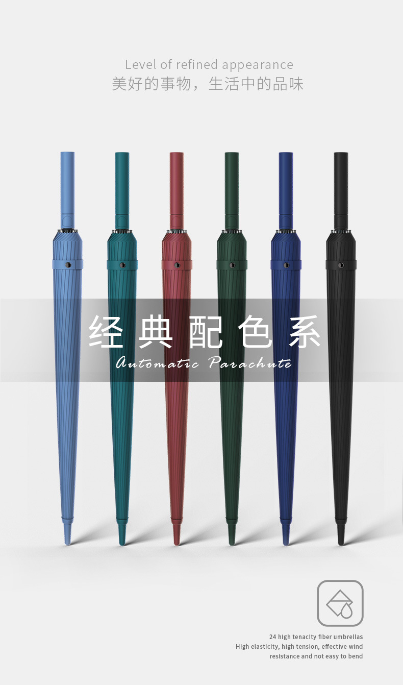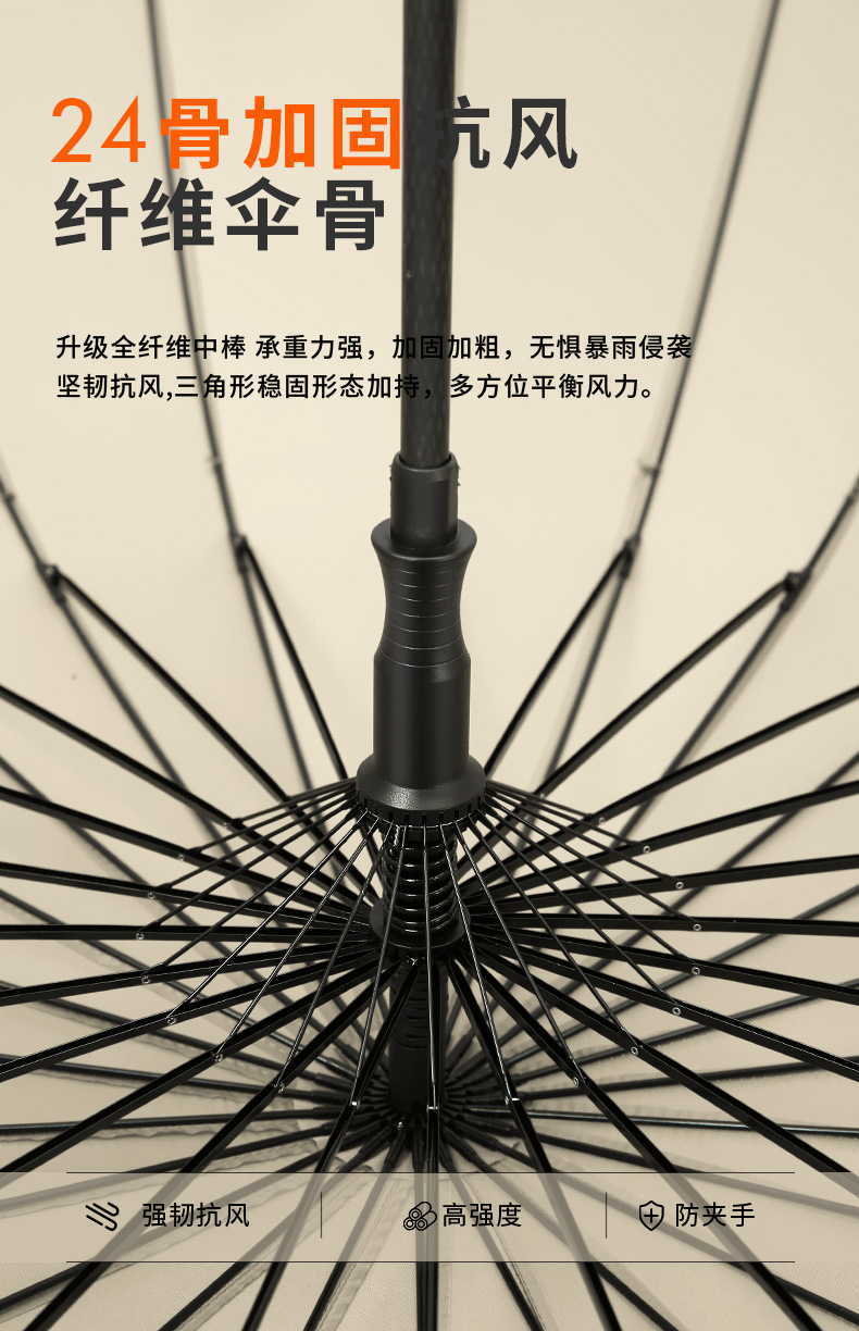 [upgraded fiber umbrella rib] 24 ribs classic black-matte handle