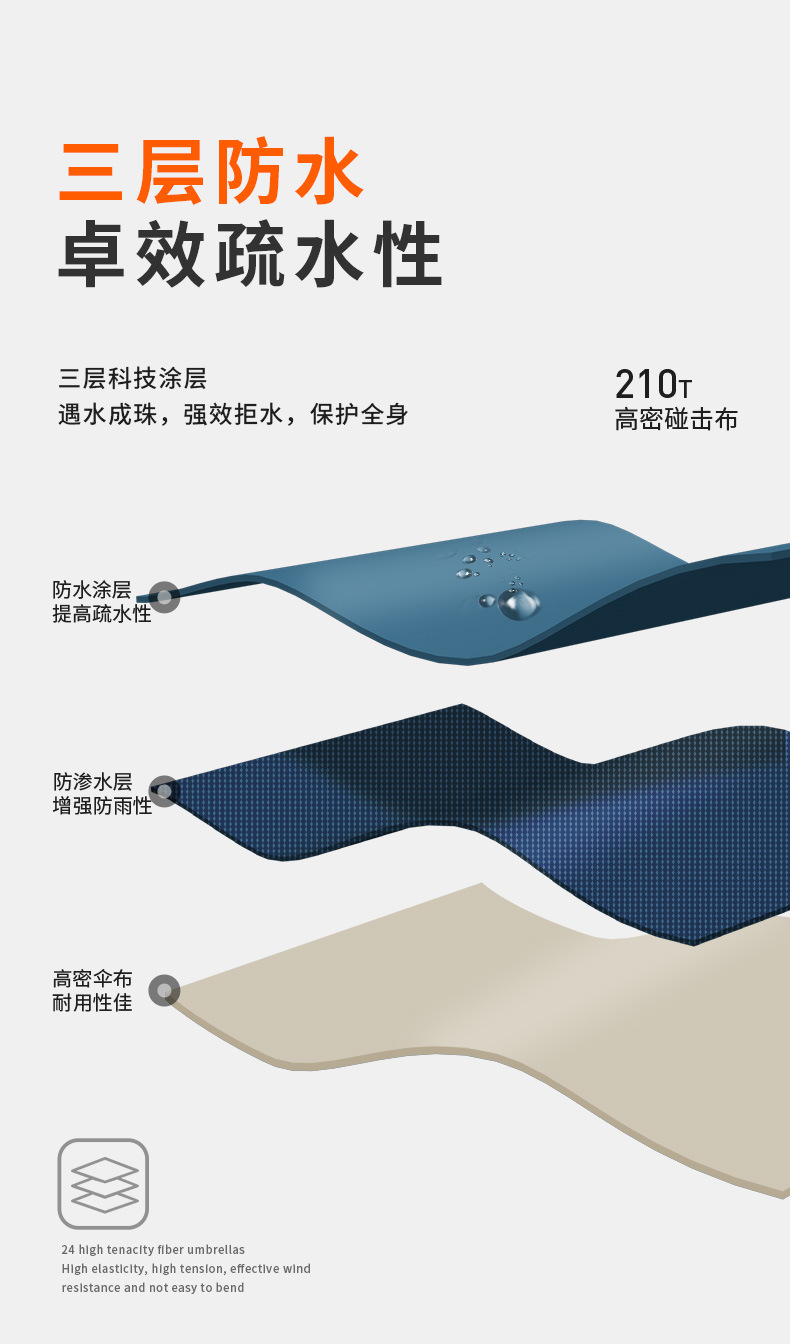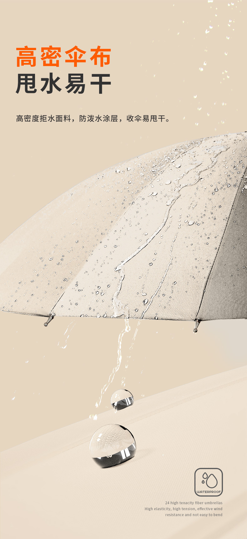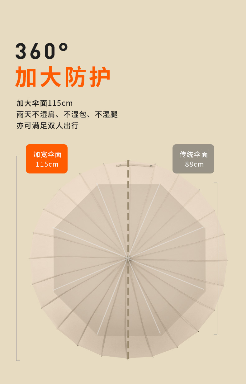 [upgraded fiber umbrella rib] 24-rib paulownia wood-frosted handle