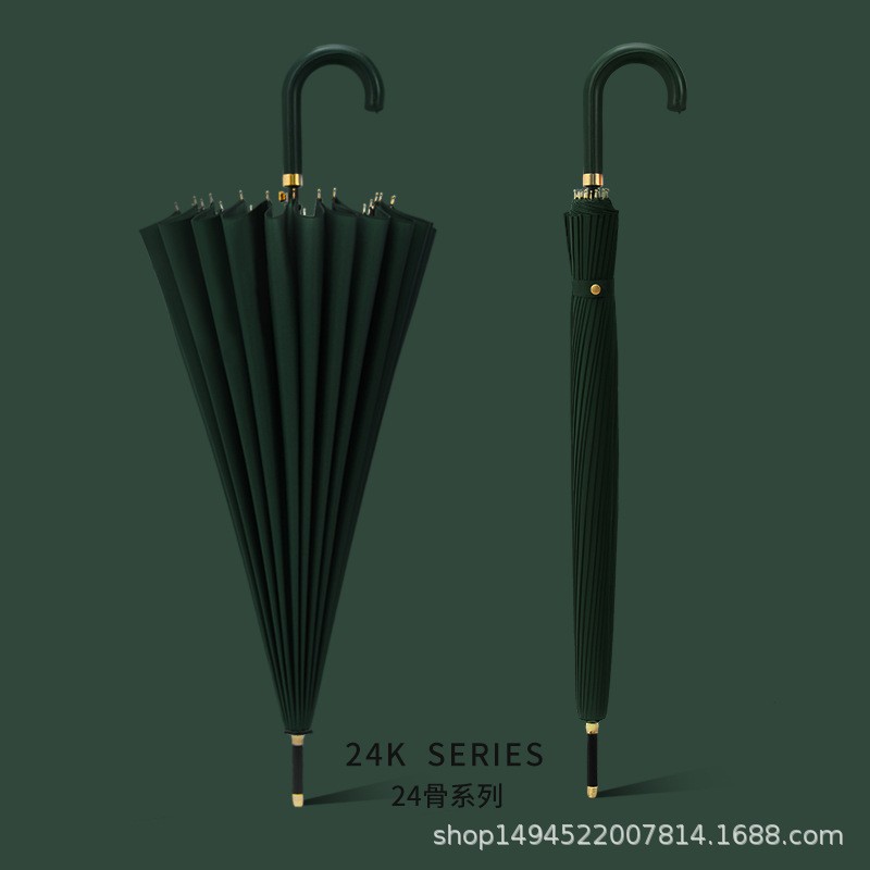 [24-rib automatic] dark green-curved-handle umbrella