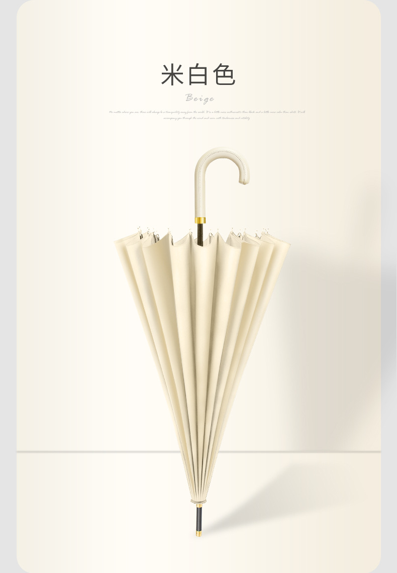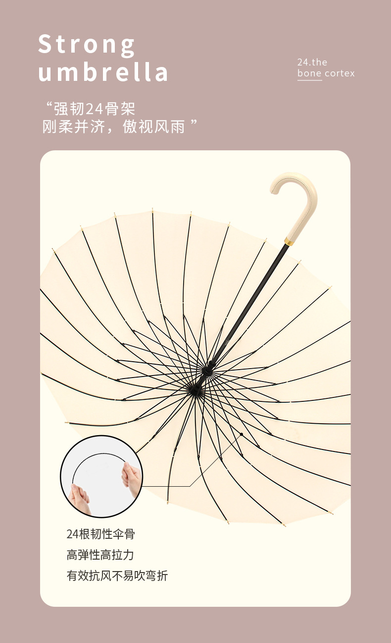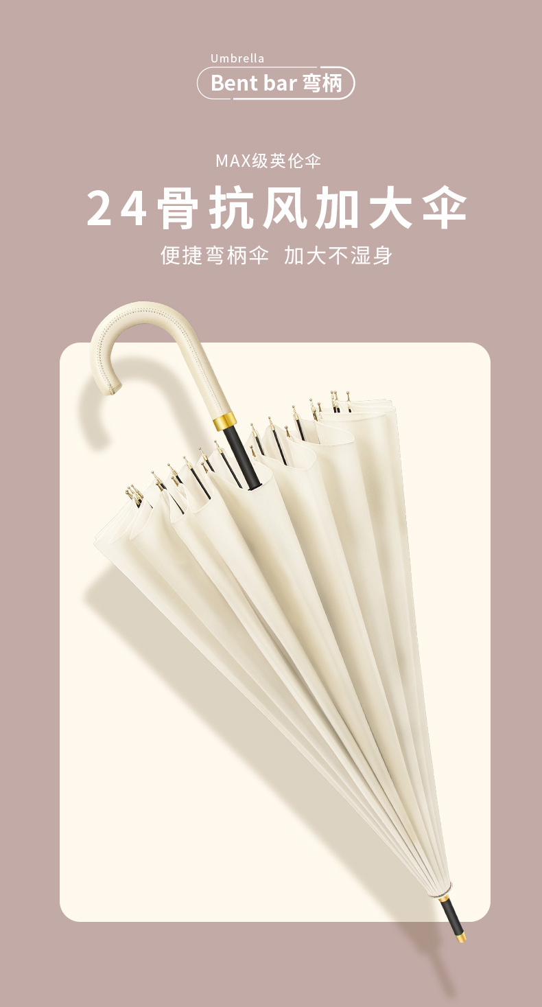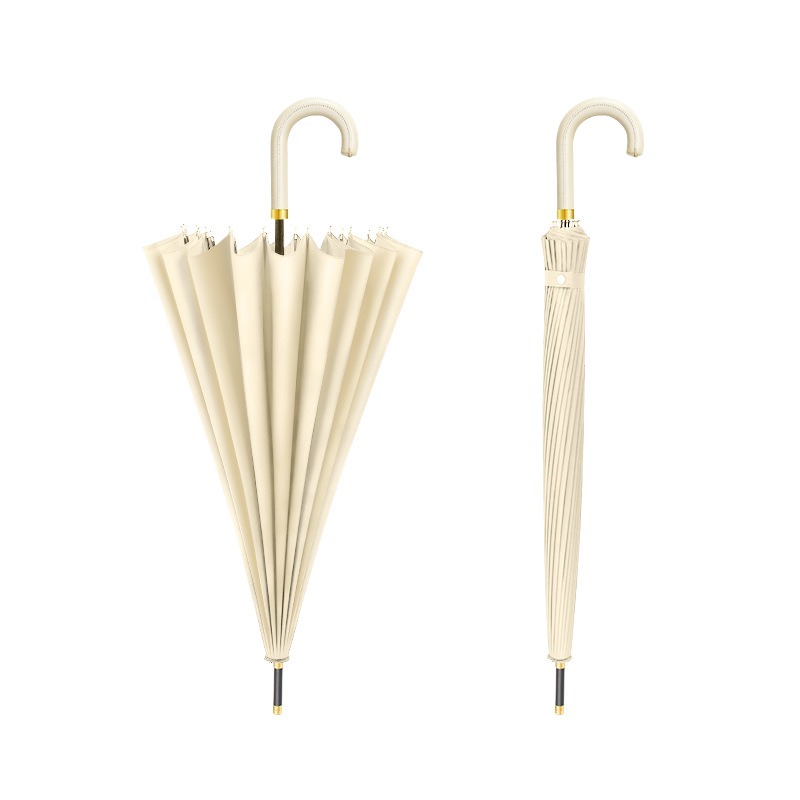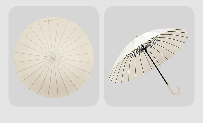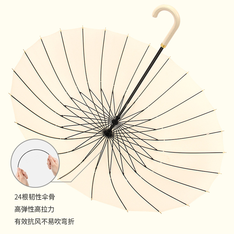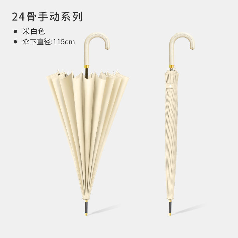 [24-rib manual] beige-curved-handle umbrella