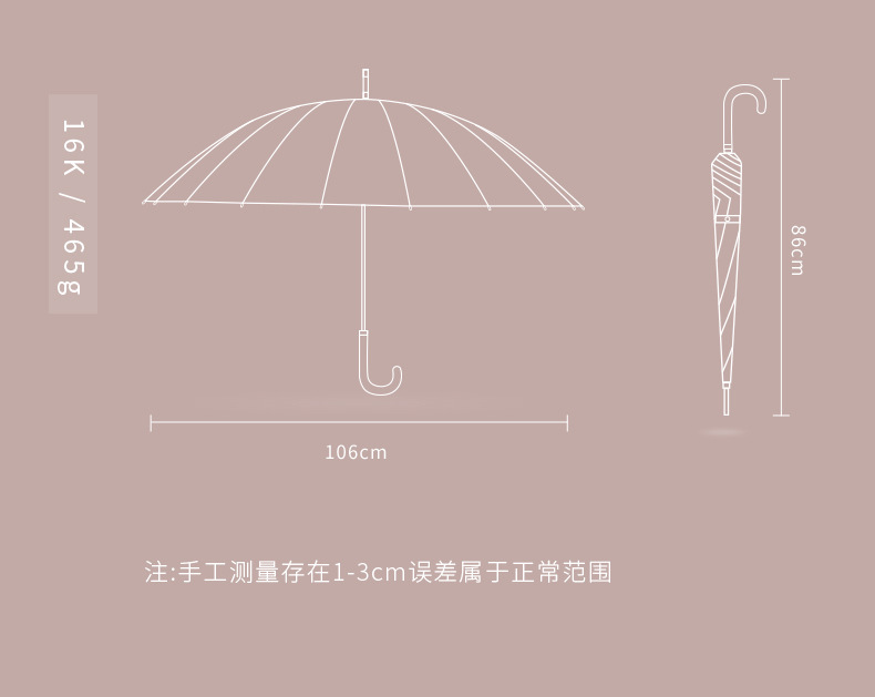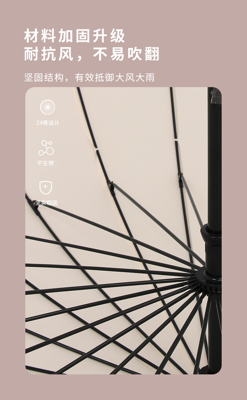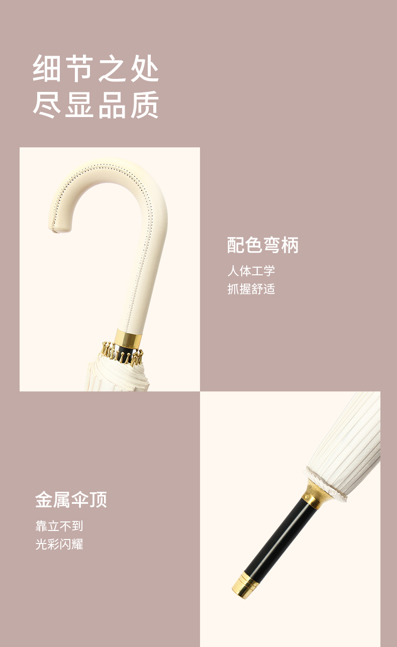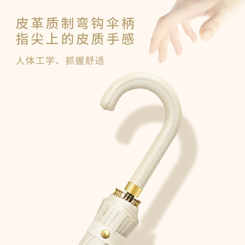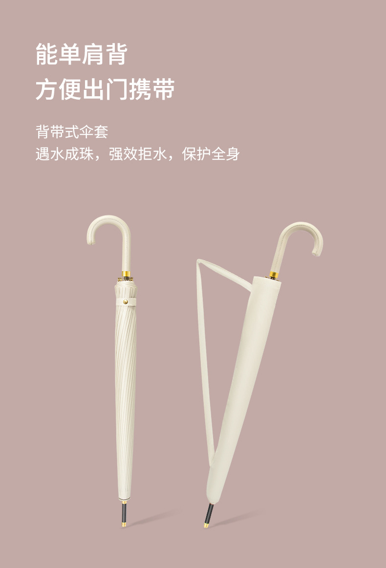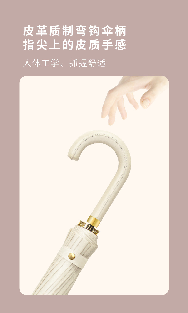 [24-rib manual] beige-curved-handle umbrella