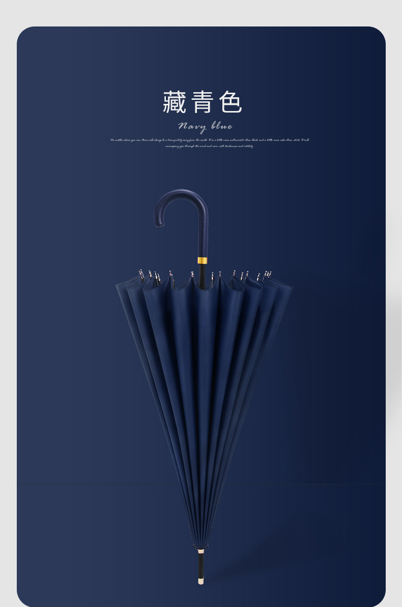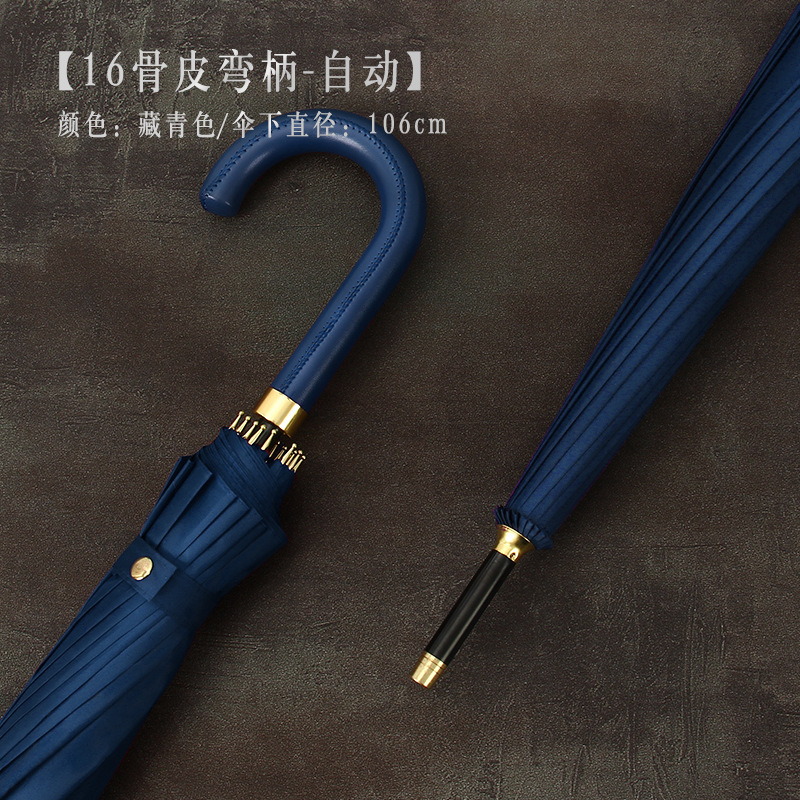 [16-rib automatic] navy blue-curved-handle umbrella