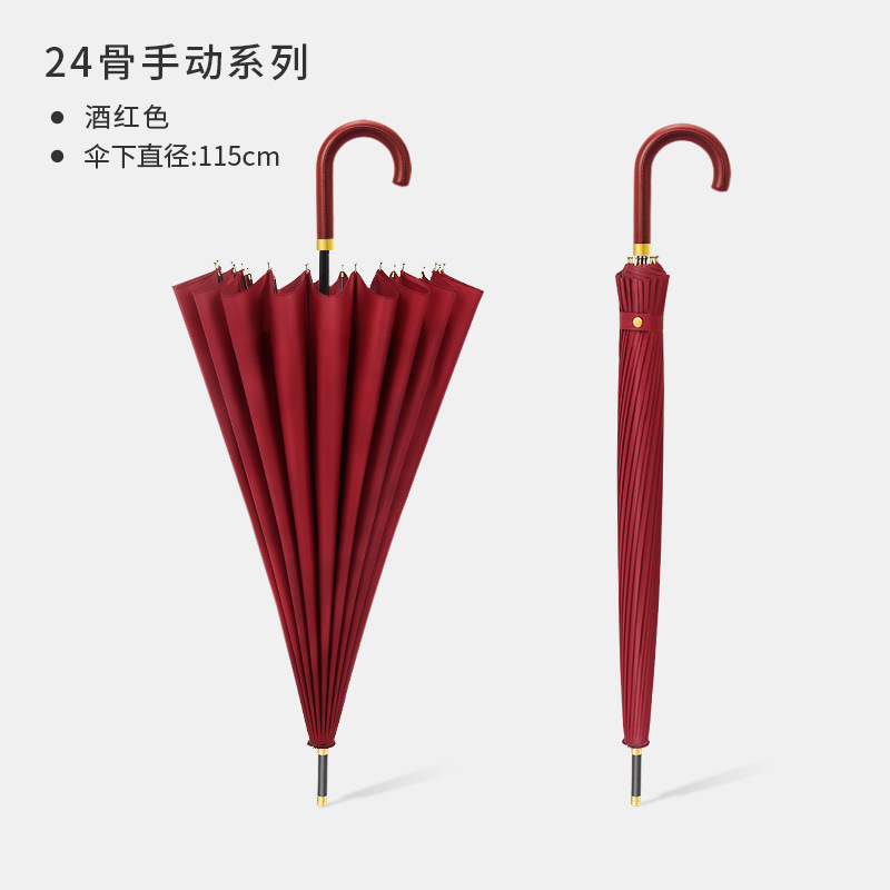 [24-rib manual] burgundy-curved-handle umbrella