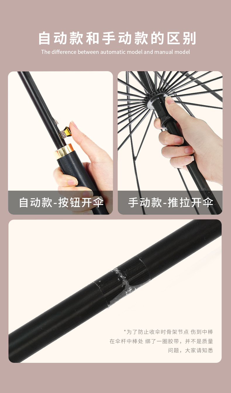 [24-rib automatic] classic black-curved-handle umbrella