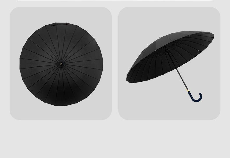 [24-rib manual] classic black-curved-handle umbrella