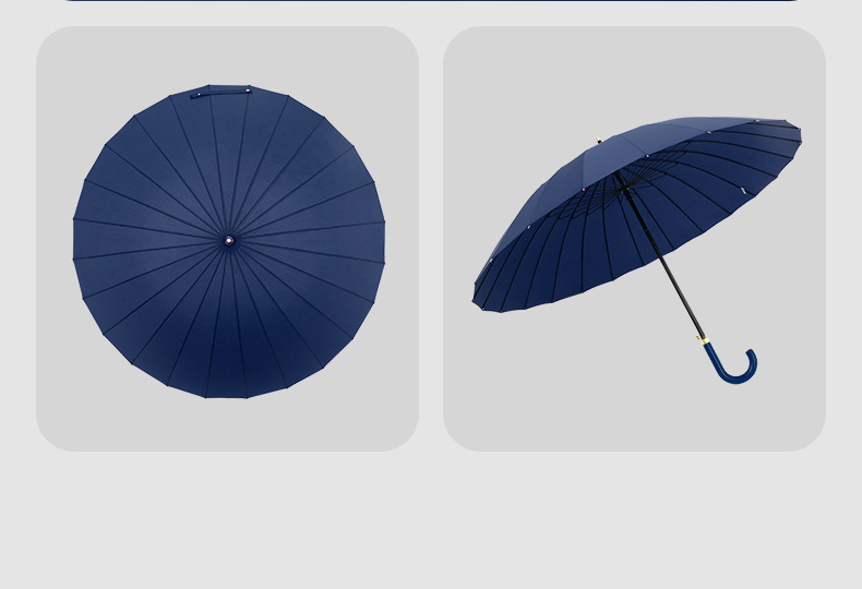 [24-rib manual] navy blue-curved-handle umbrella