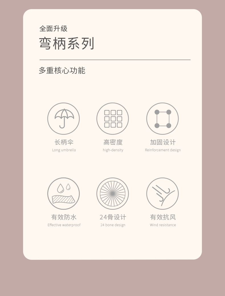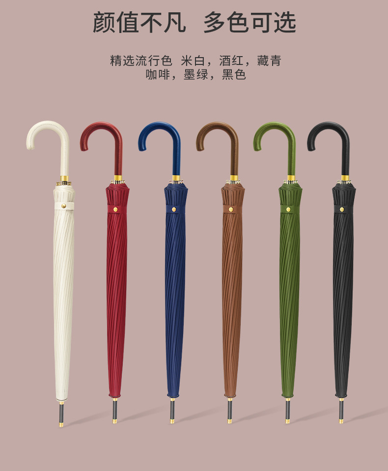 [24-rib automatic] coffee-colored bent-handle umbrella