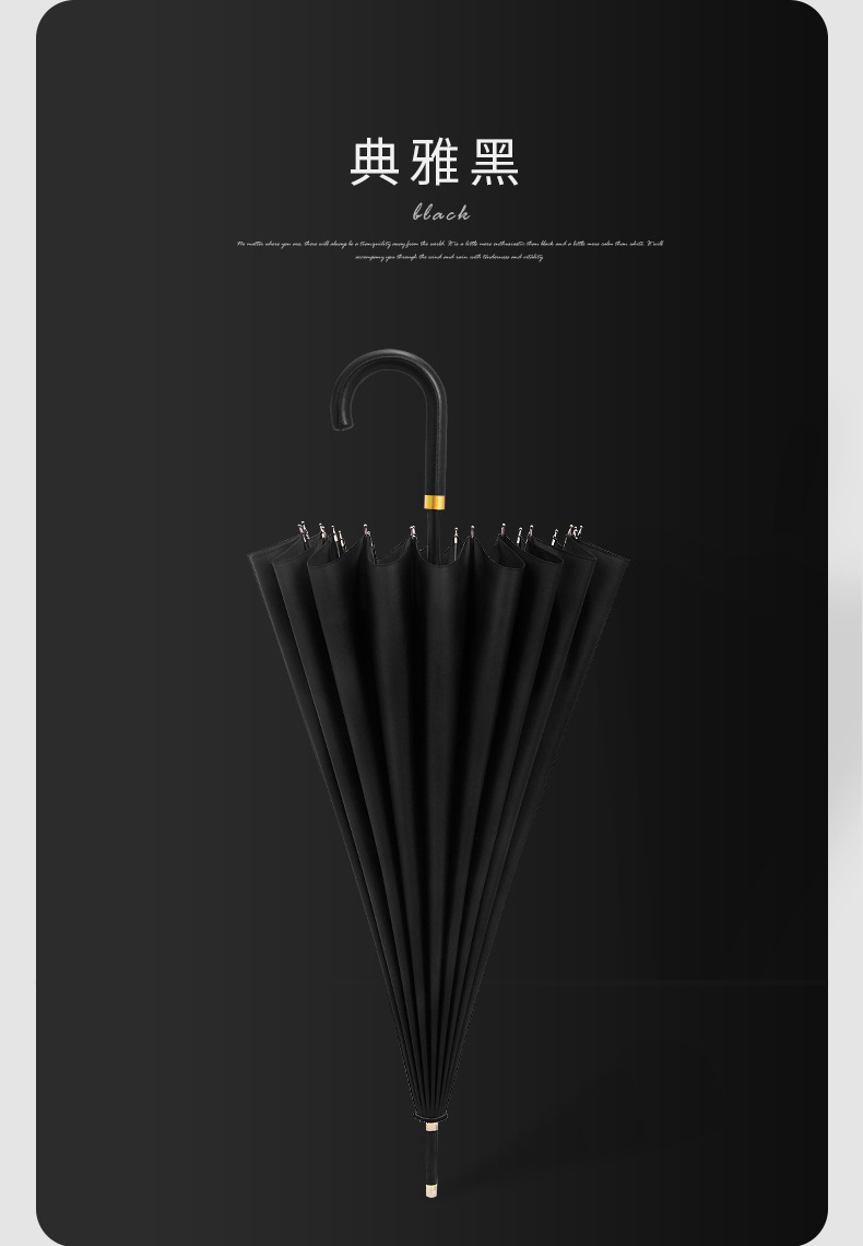 [16-rib automatic] classic black-curved-handle umbrella