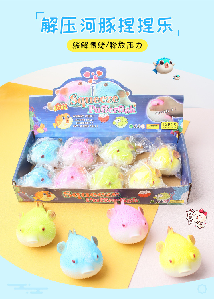 color: puffer squeezing toy