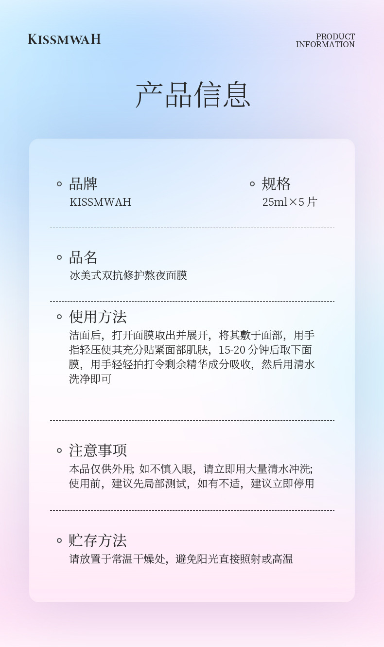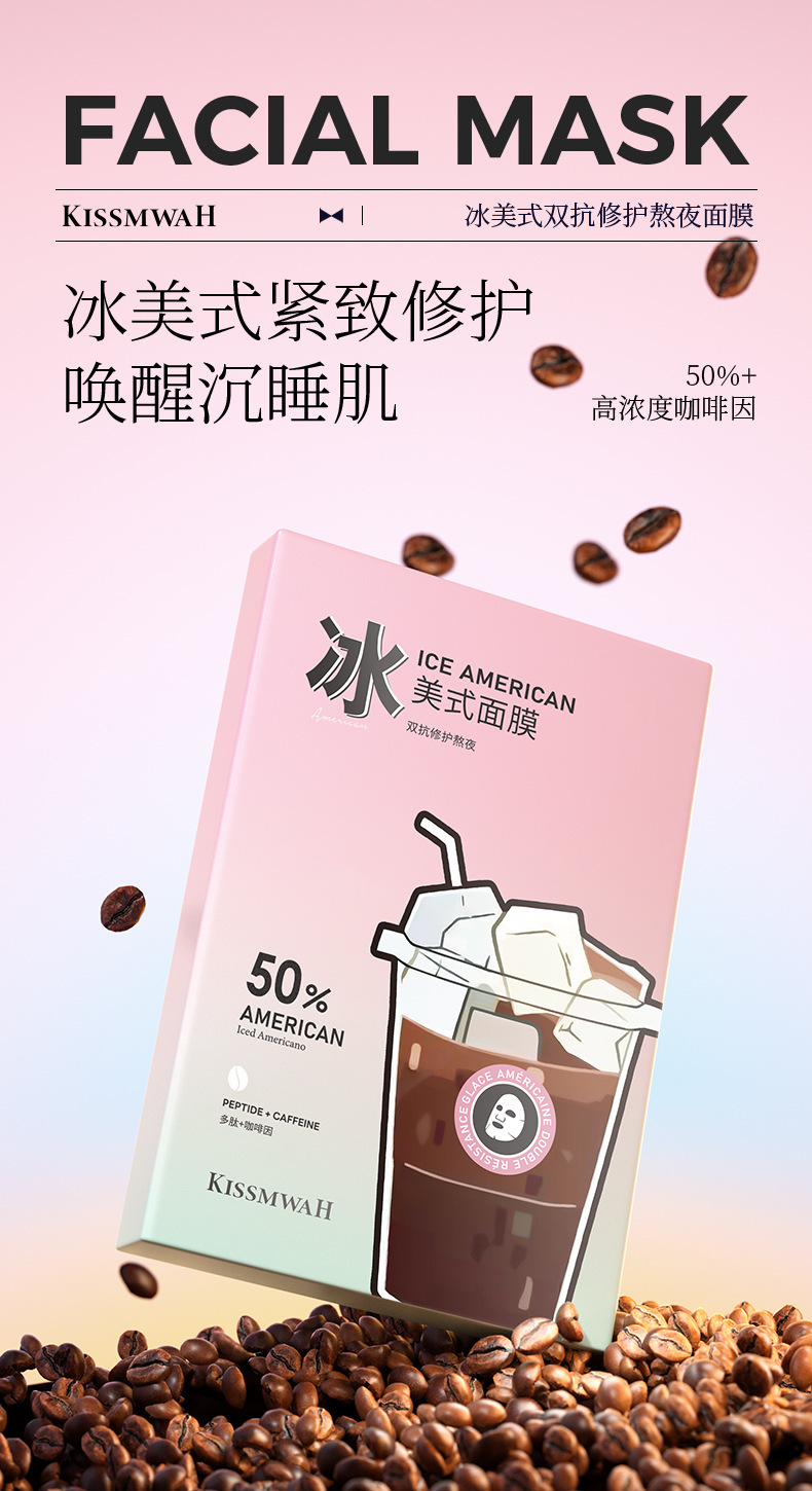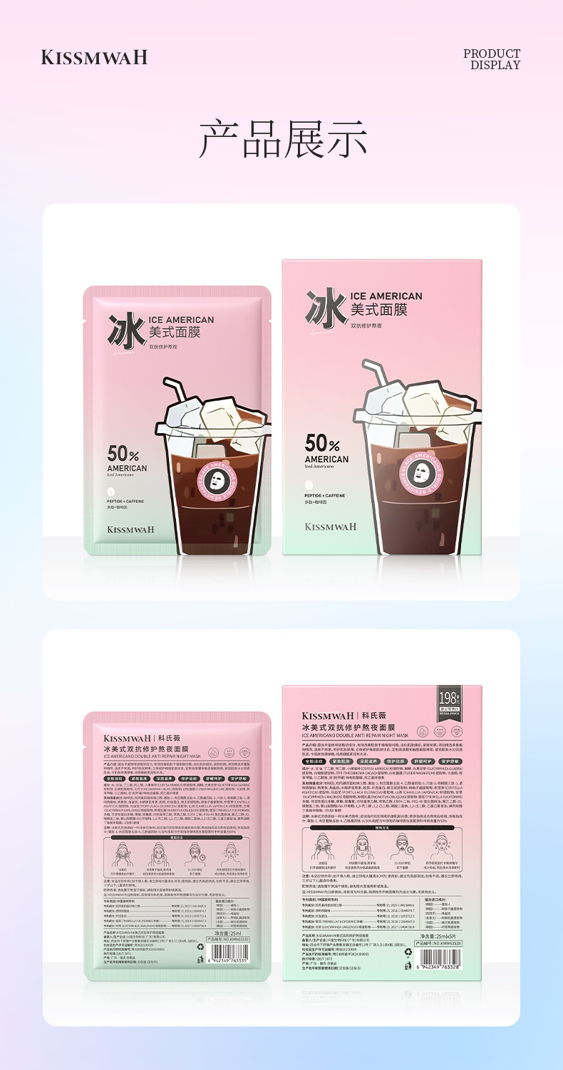 kissmwah iced americano dual-action overnight mask, sheet mask, 25ml