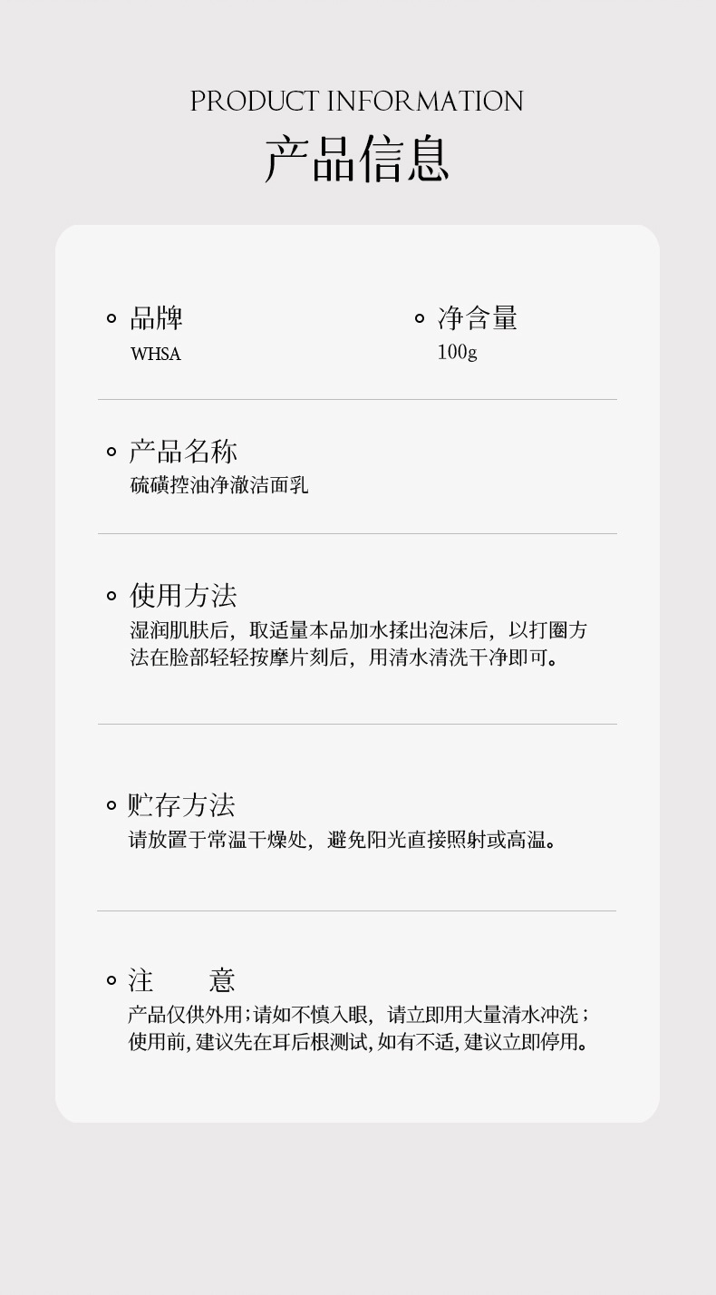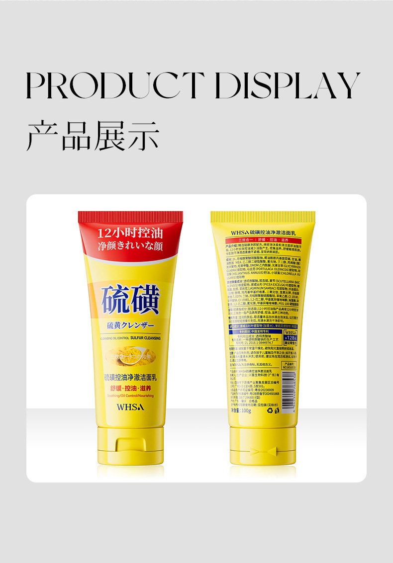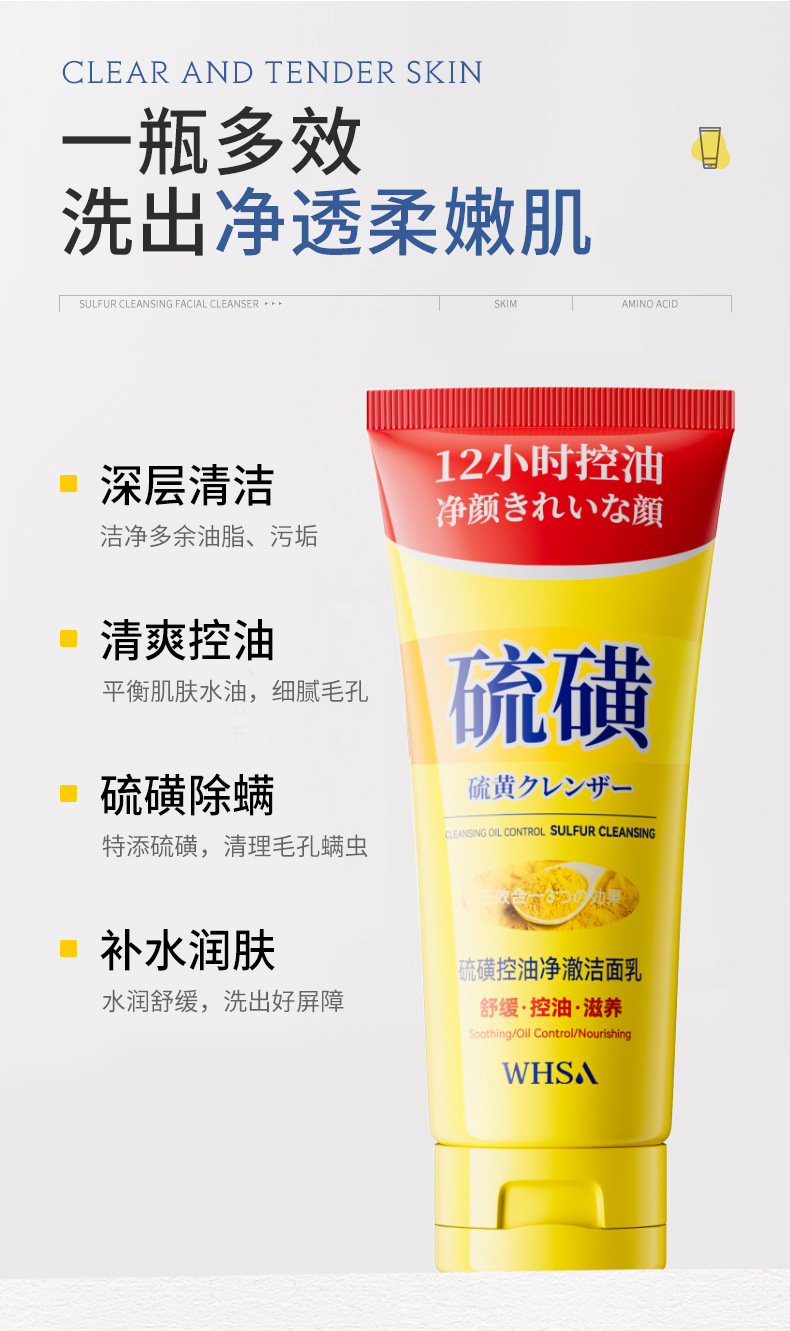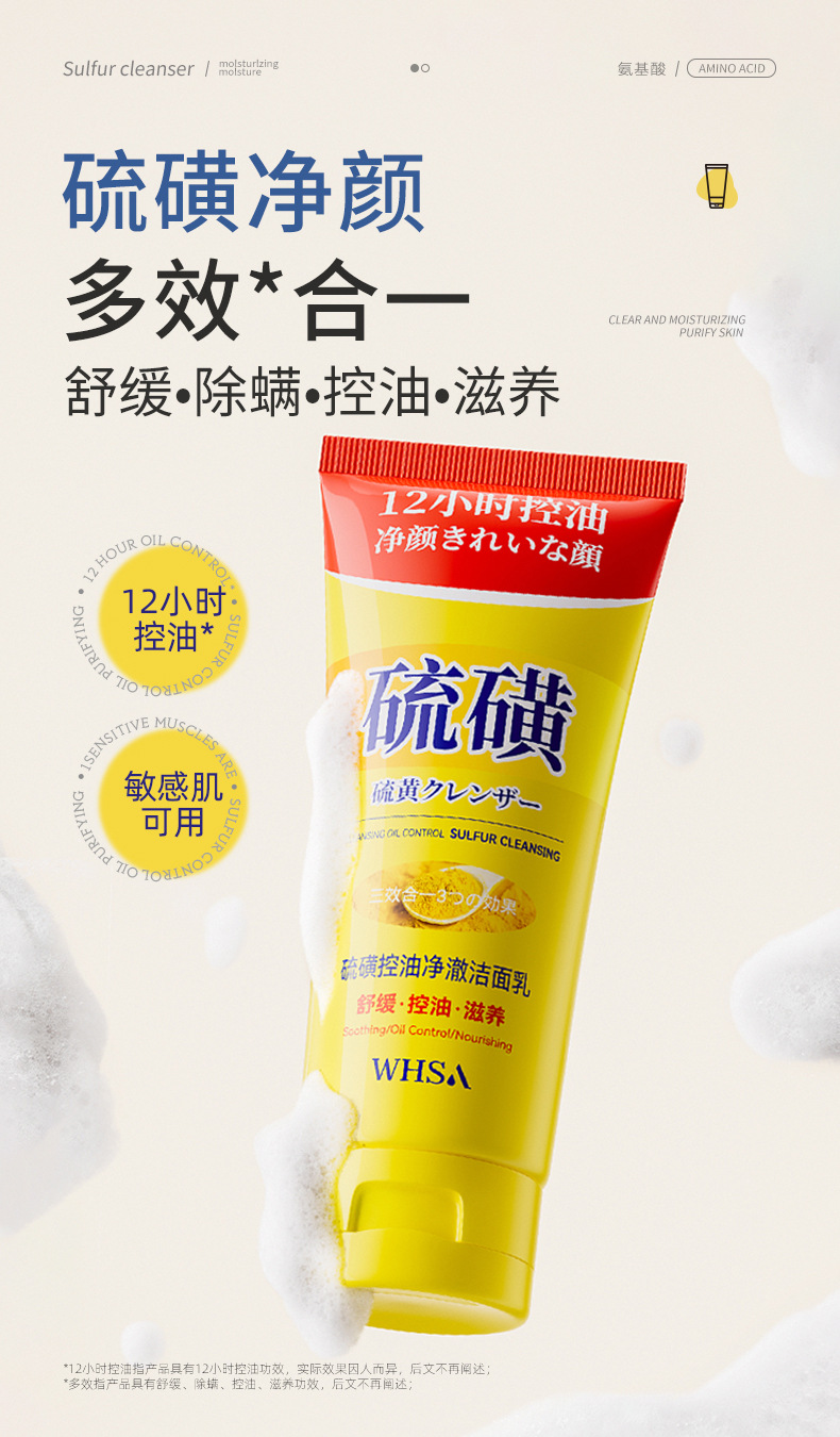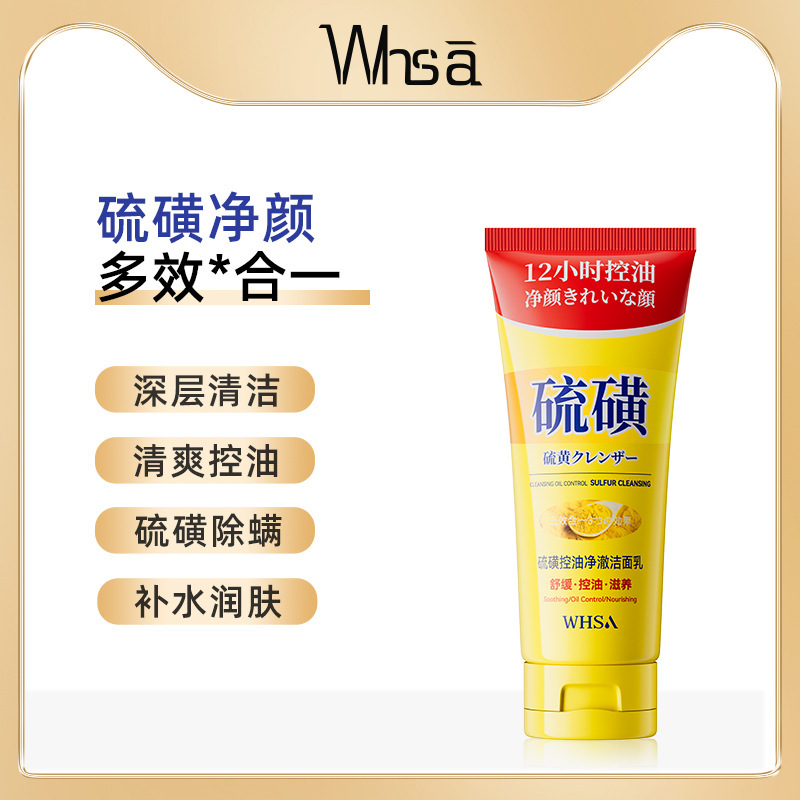 whsa sulfur oil-control cleansing facial cleanser 100g