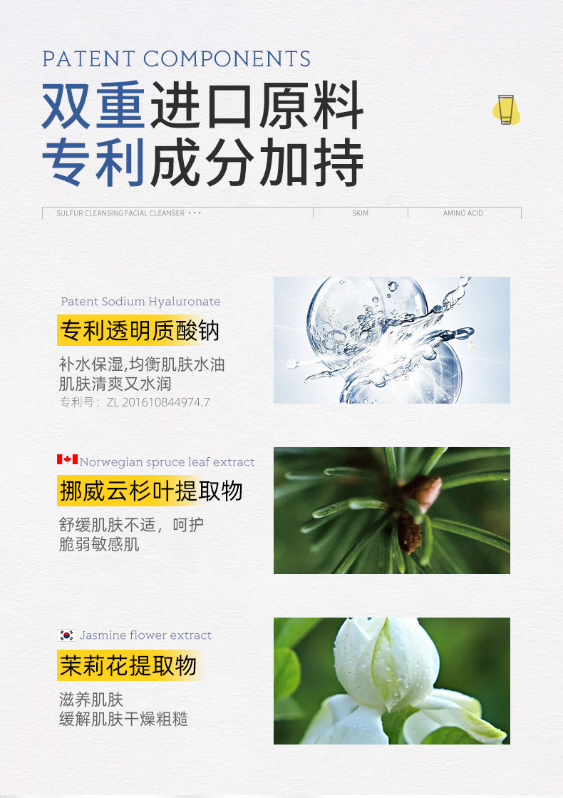 whsa snake gall sulfur amino acid oil-control cleansing facial cleanser 100g