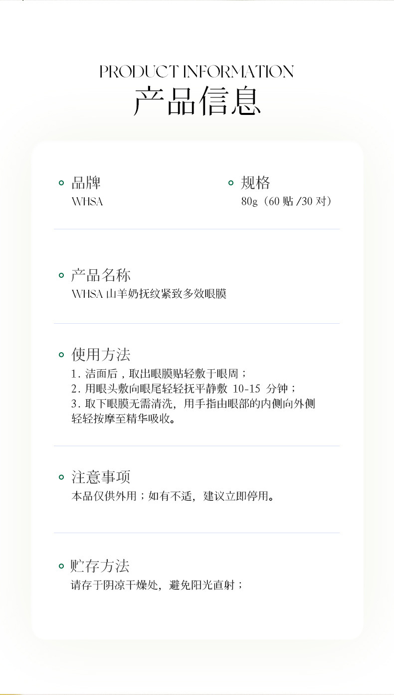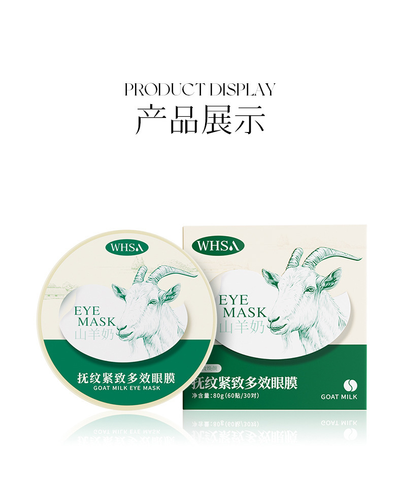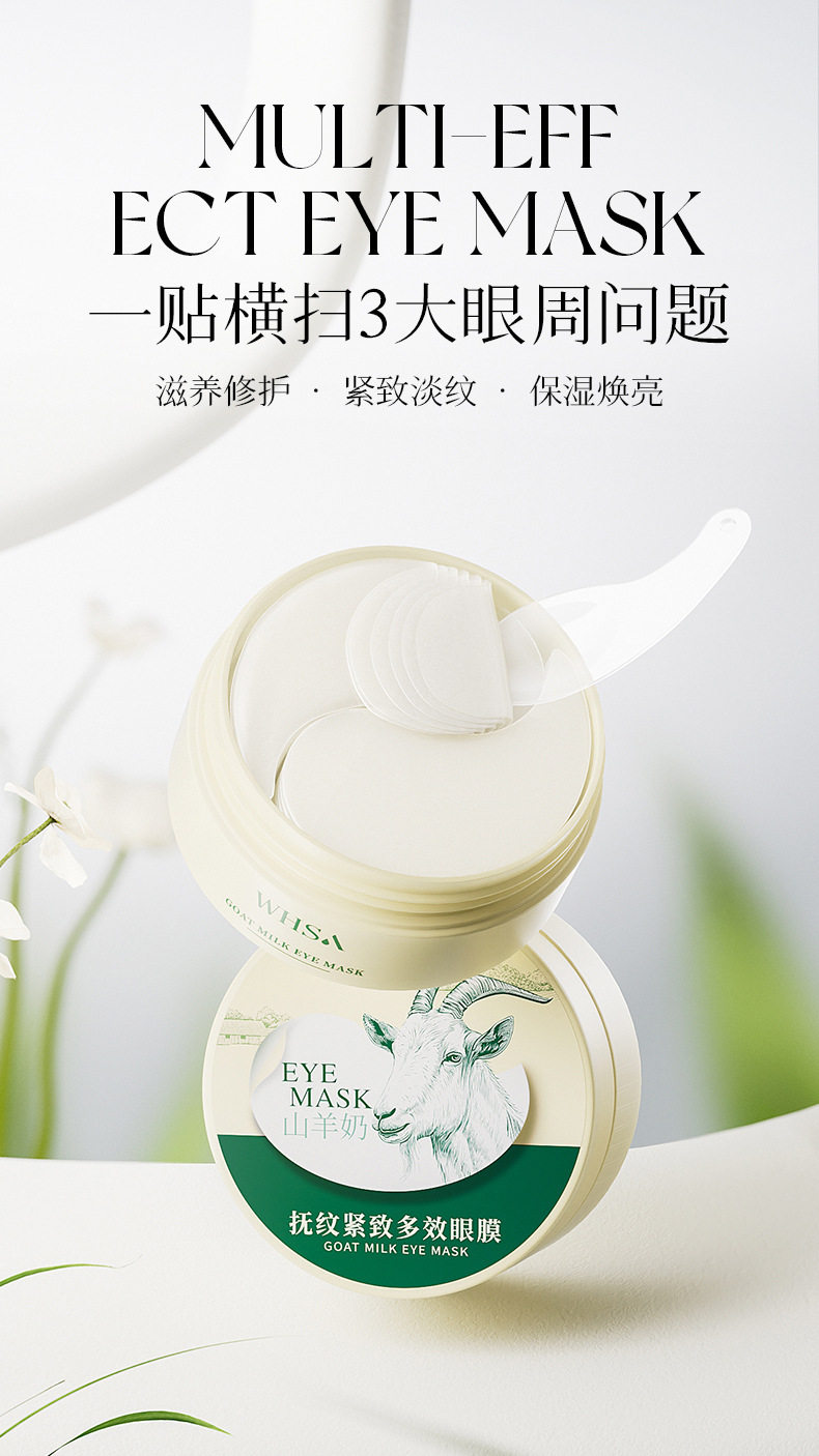 whsa goat's milk wrinkle-improving firming multi-effect eye mask 80g (60 patches/30 pairs)
