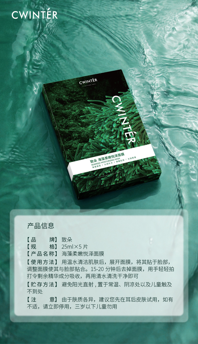 zhi duo seaweed tender and radiant mask – box of 5 x 25ml sheets