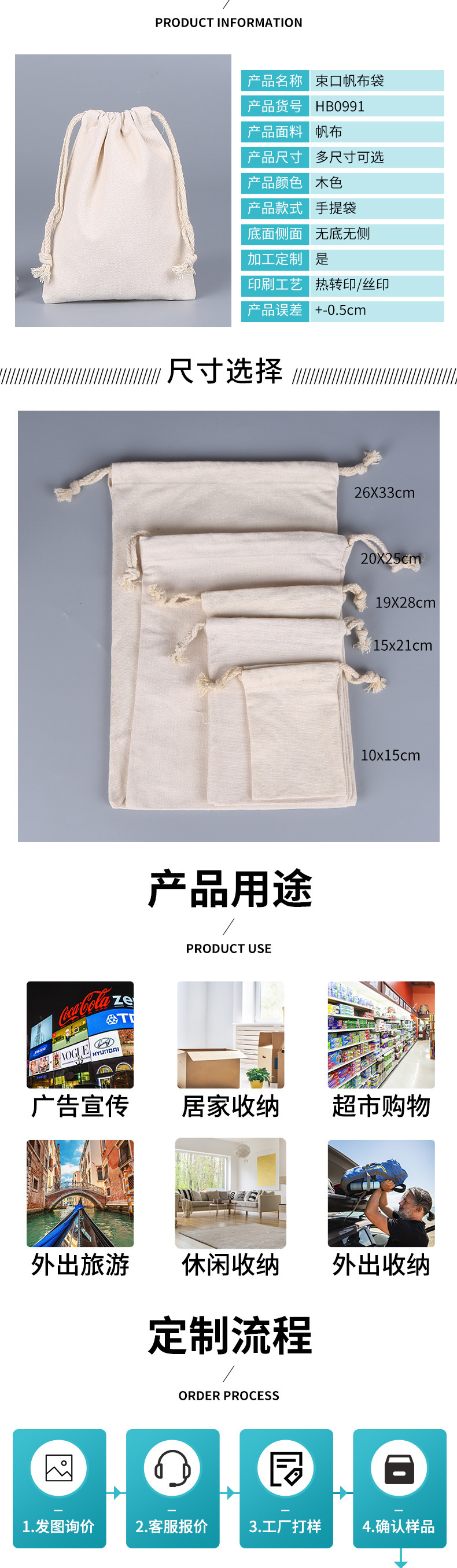 10*15cm; various sizes in stock