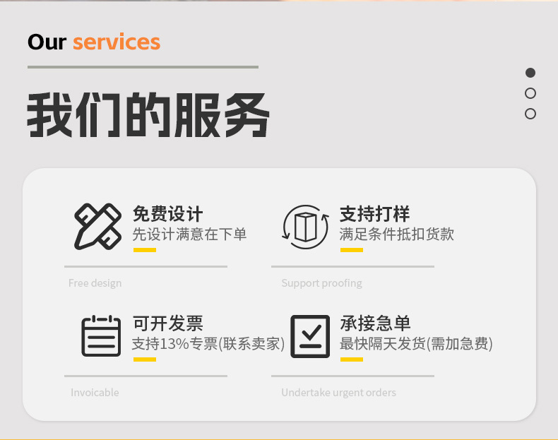 customization on demand/free samples/free proofing/free design/bulk discounts