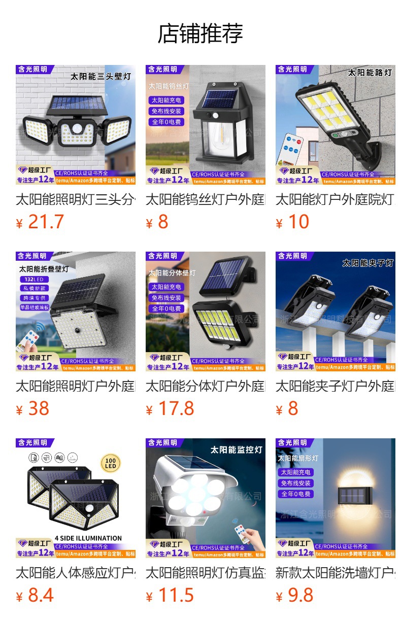 solar clip light-eight-grid cob [remote control type] (yl-172)