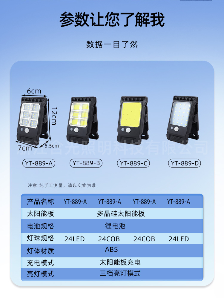 solar clip-on light [24 cobs + six grids] (yt-889-b)