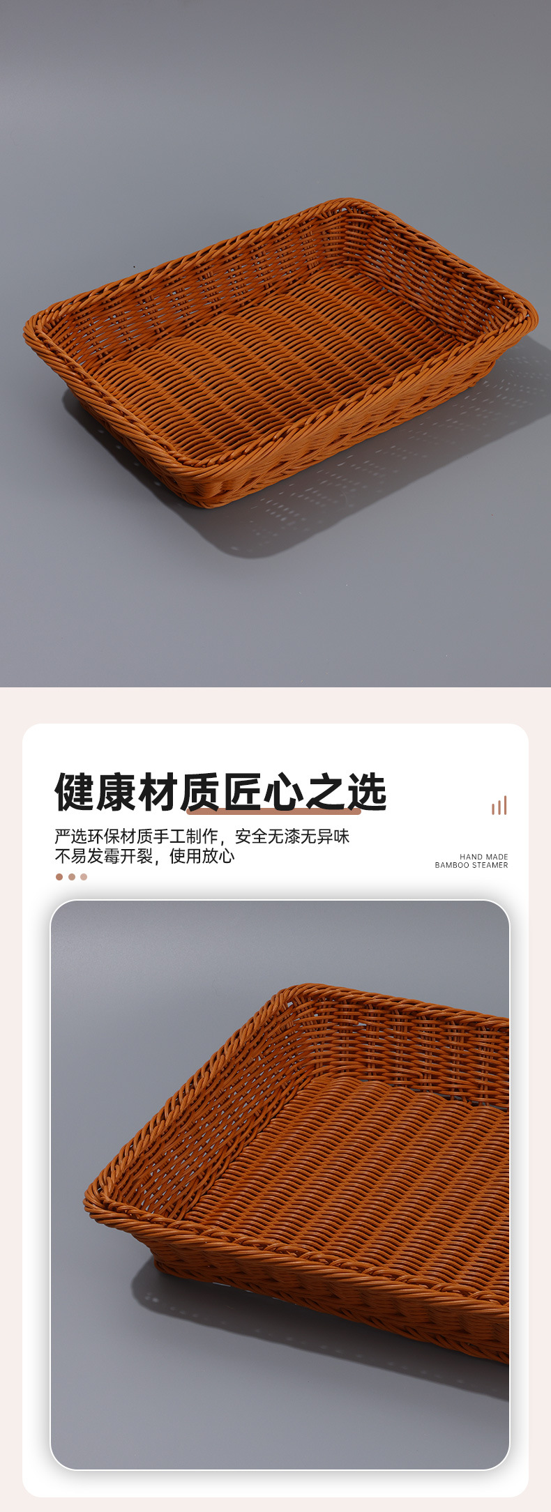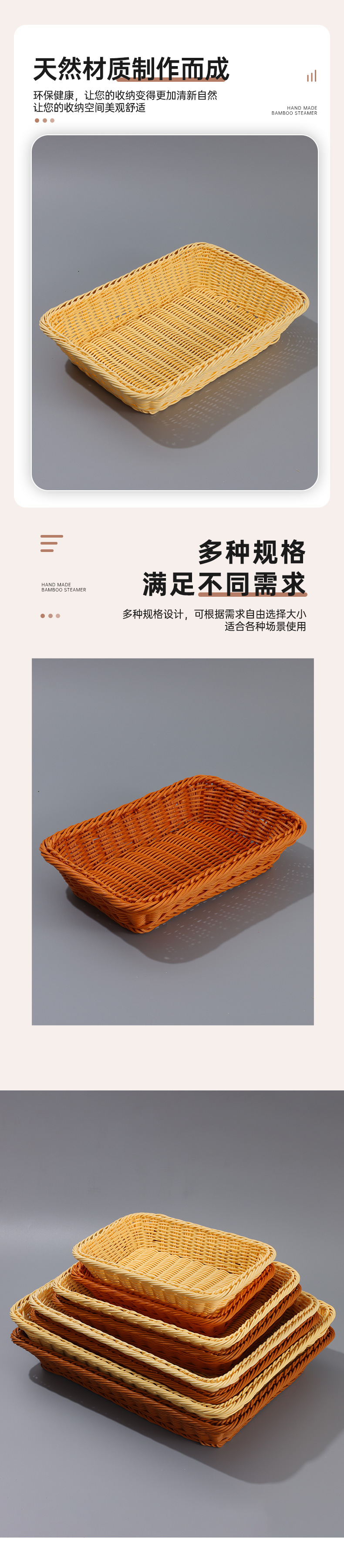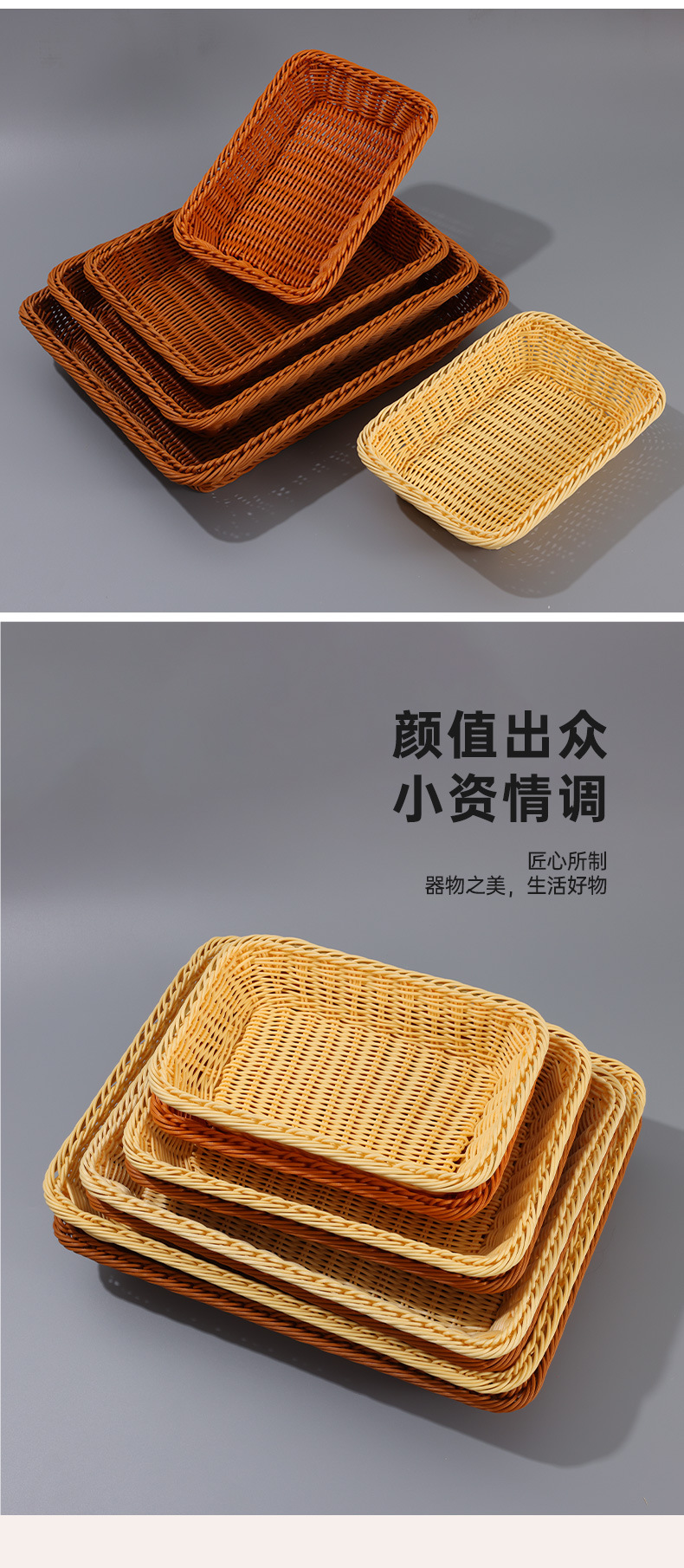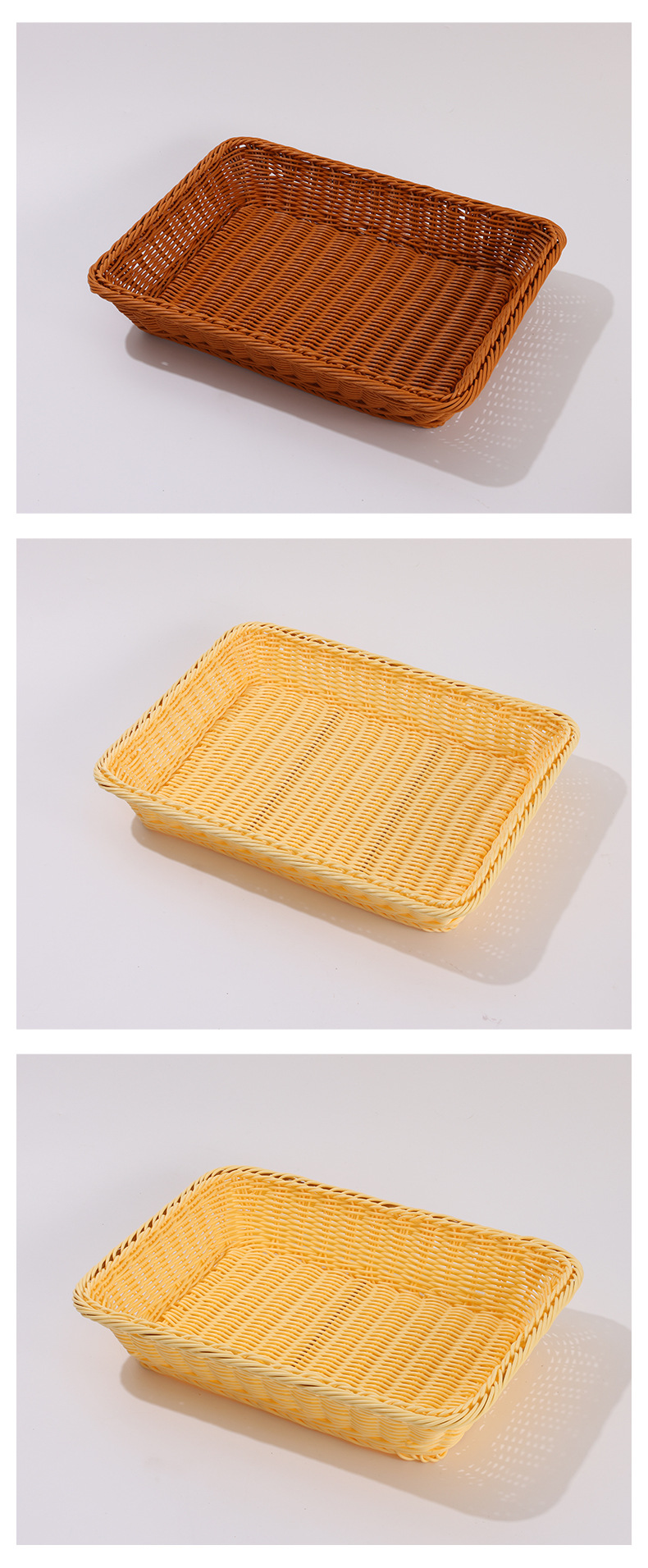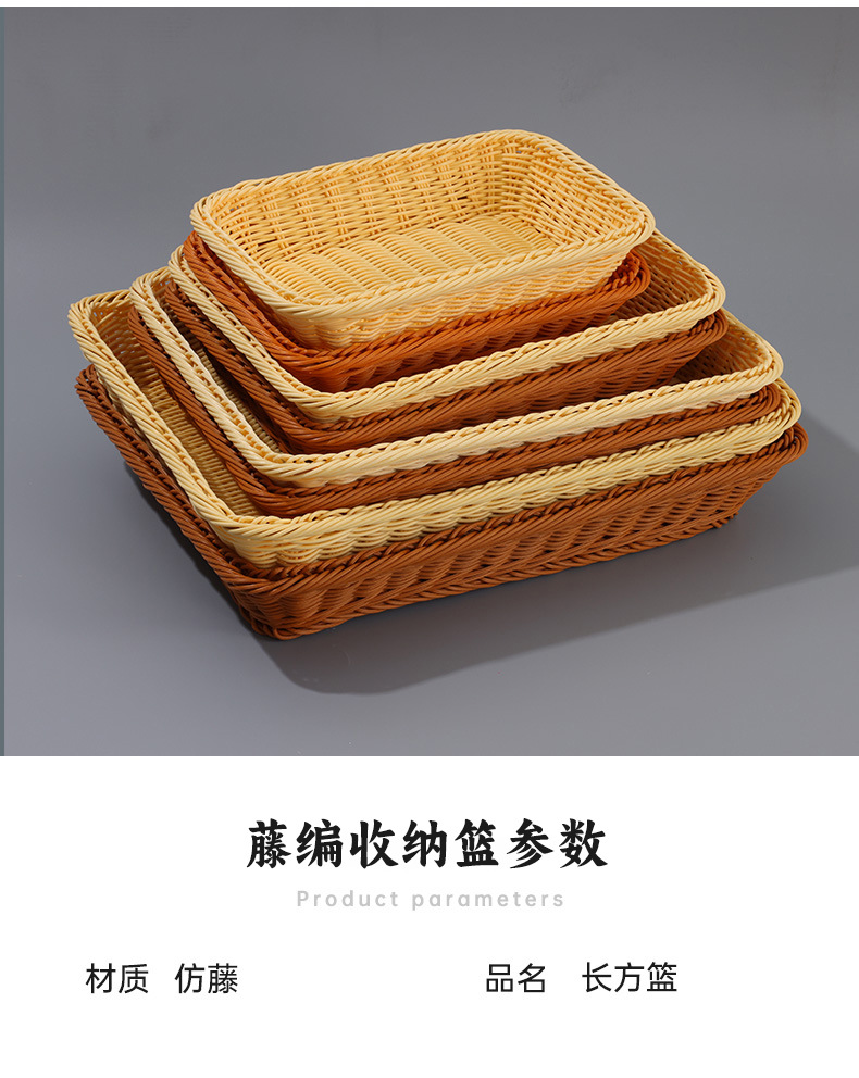 coffee color rectangular basket, beige rectangular basket