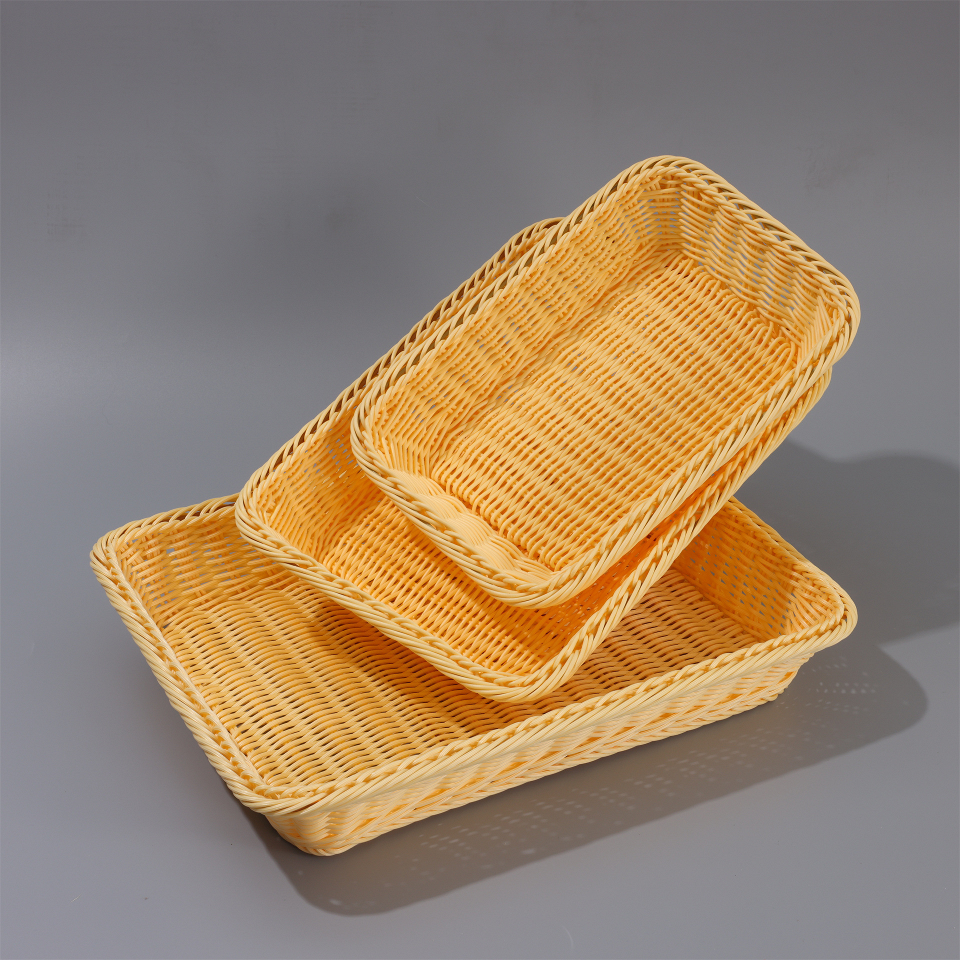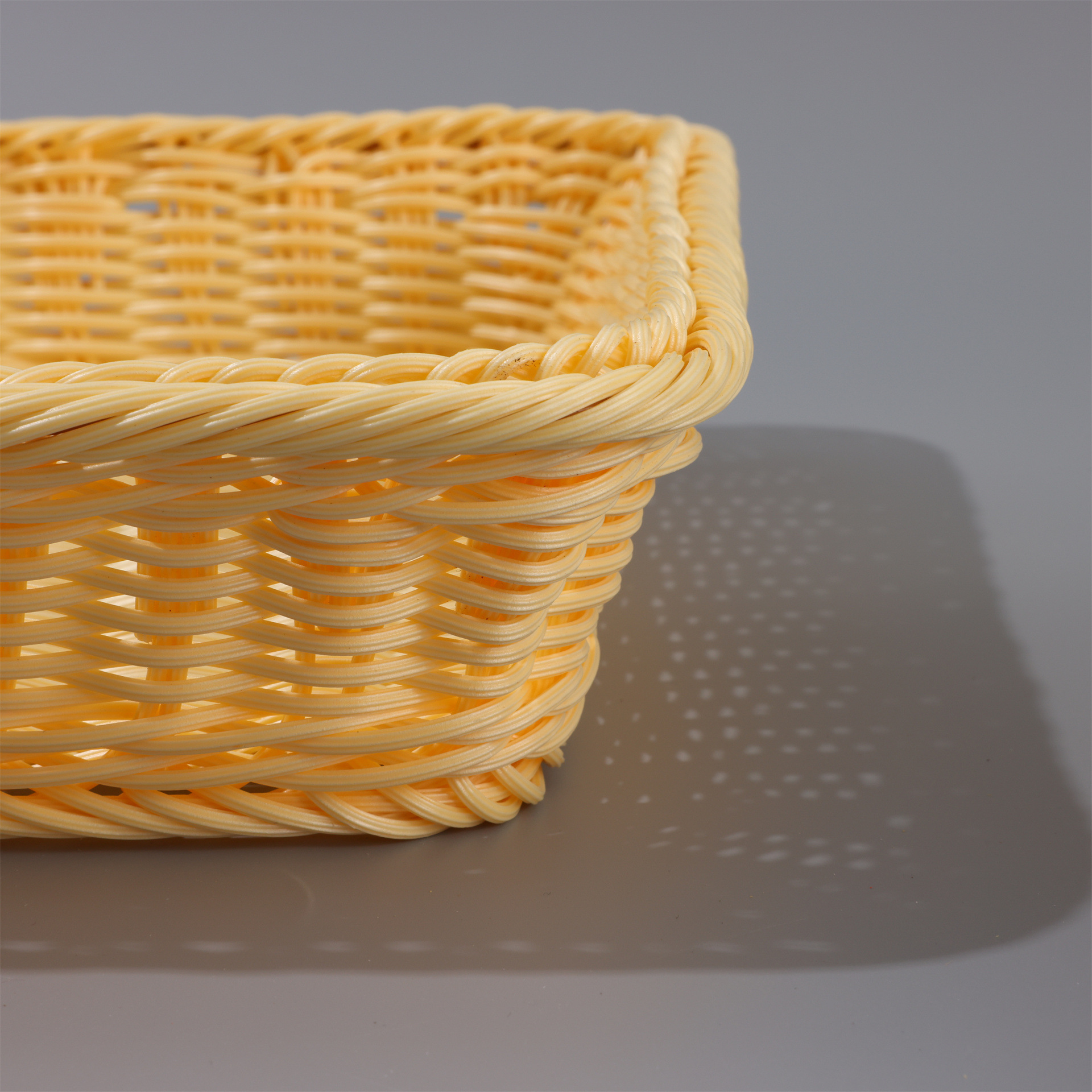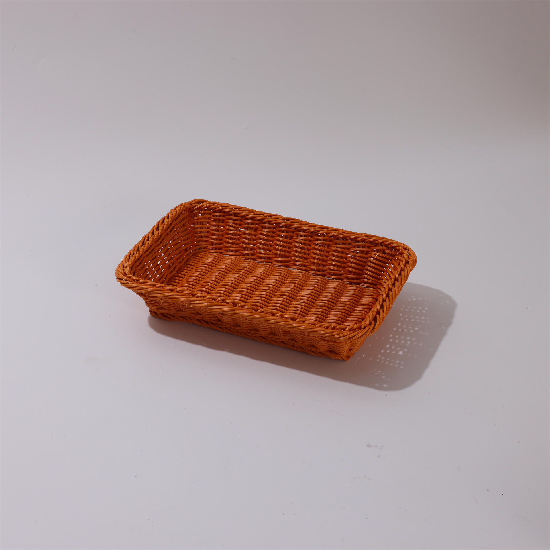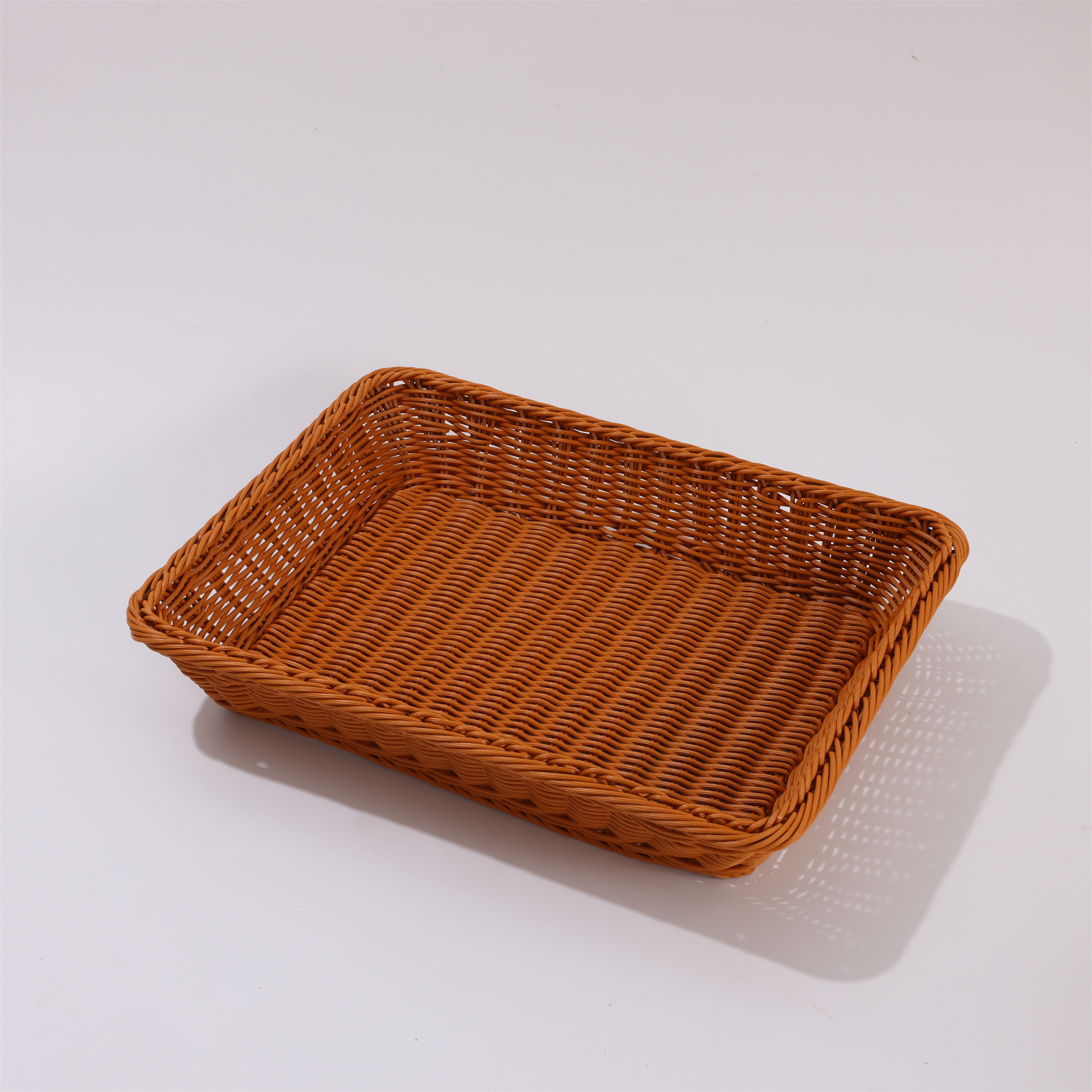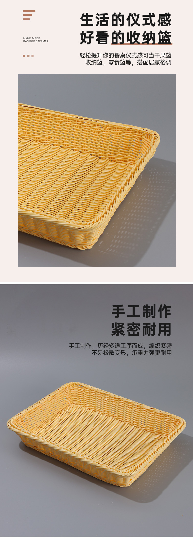 coffee color rectangular basket, beige rectangular basket