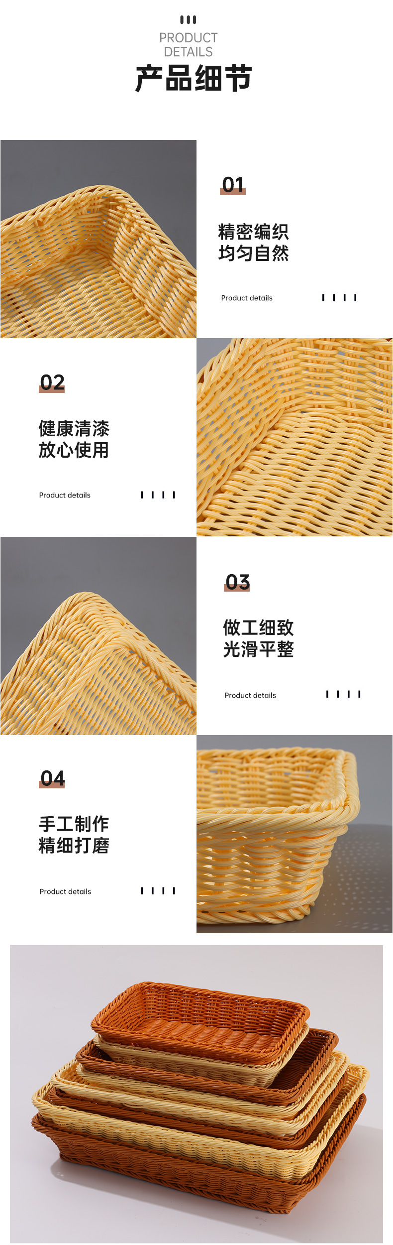 color: coffee color rectangular basket, beige rectangular basket
