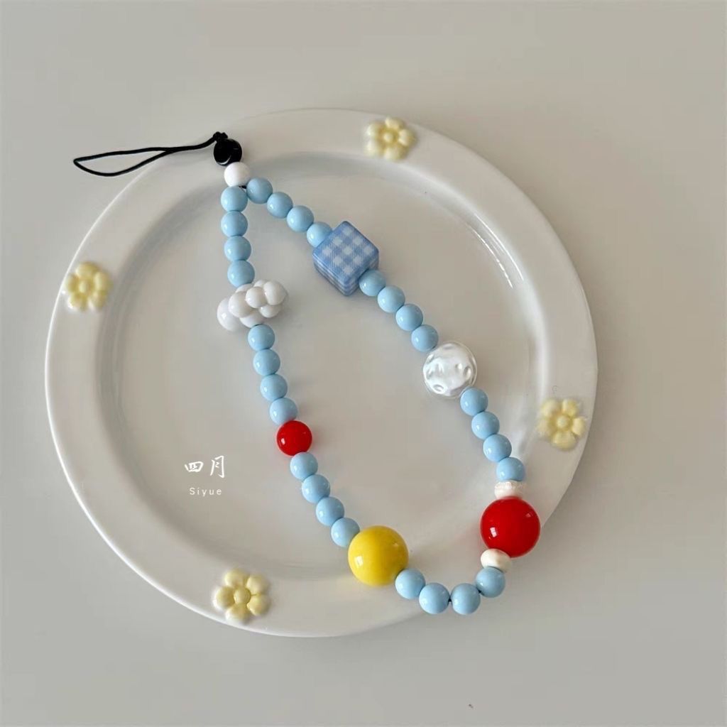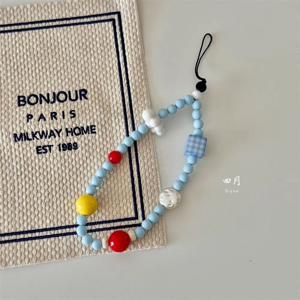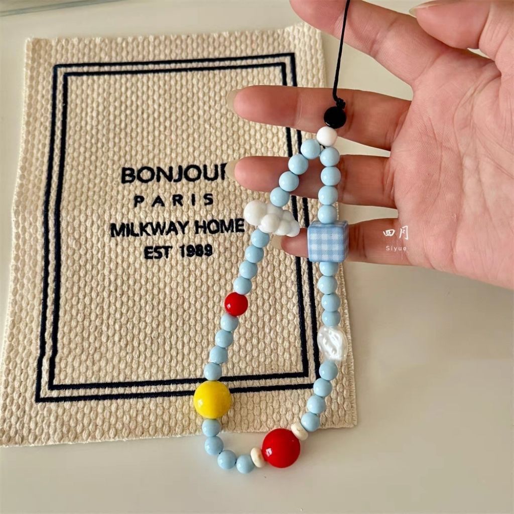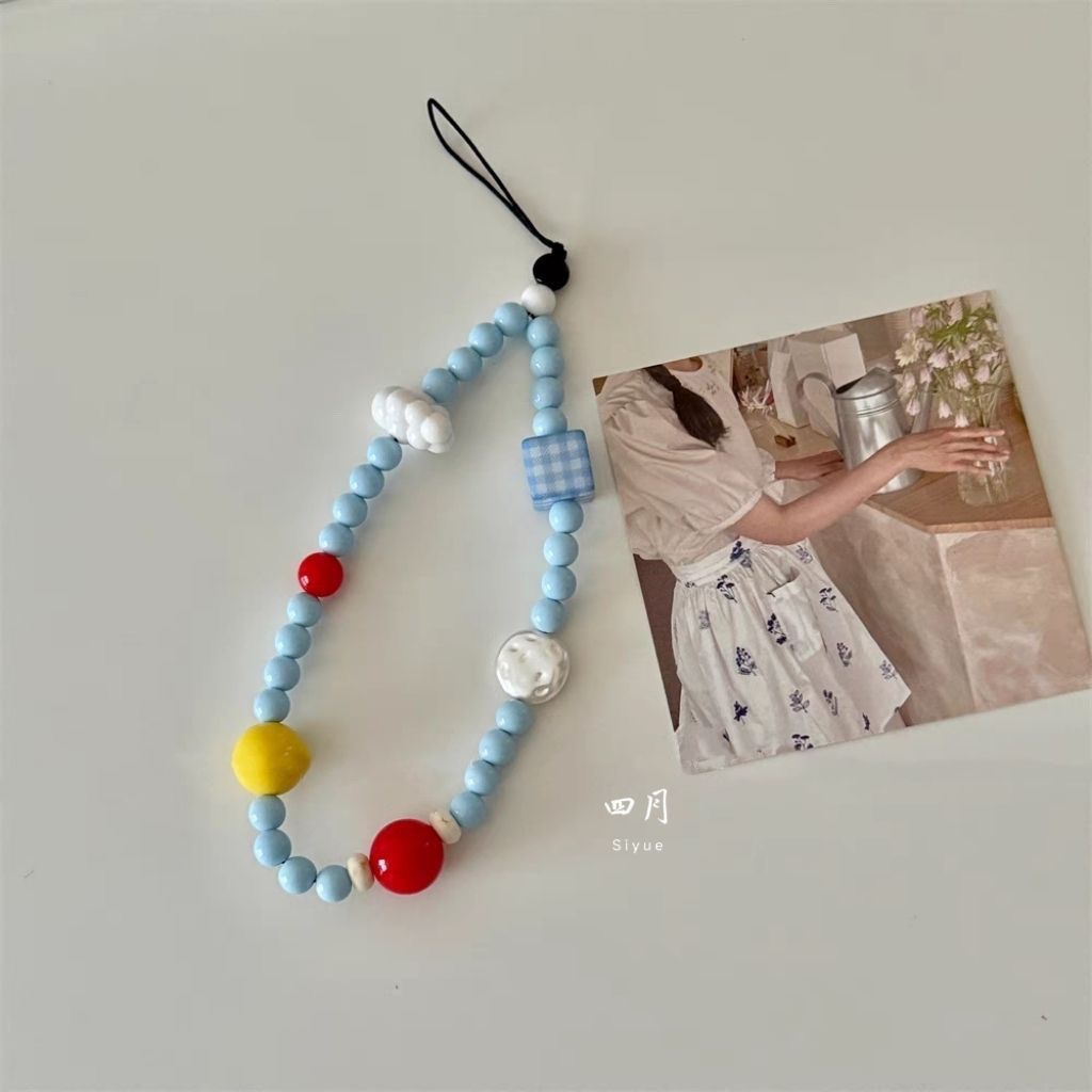 cloud square grid beaded cellphone chain