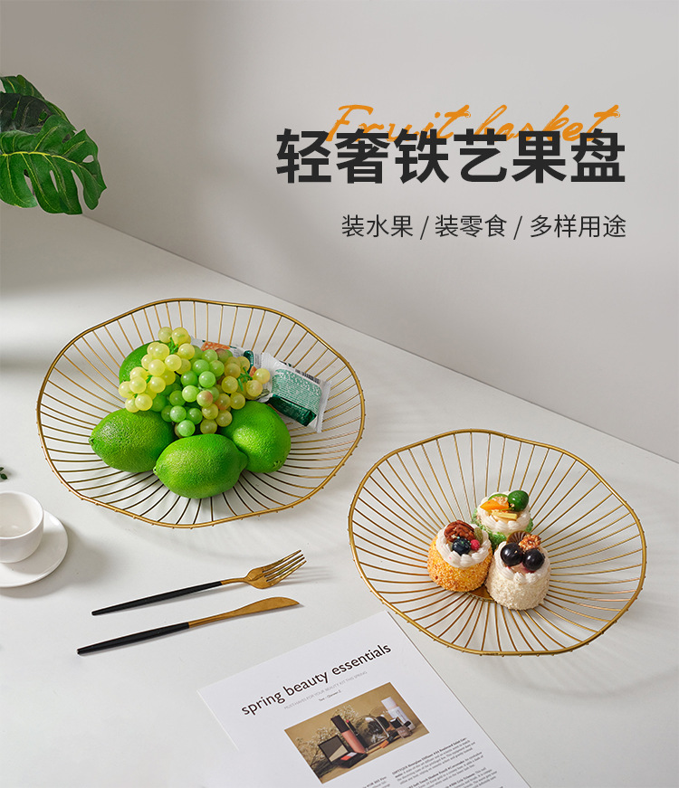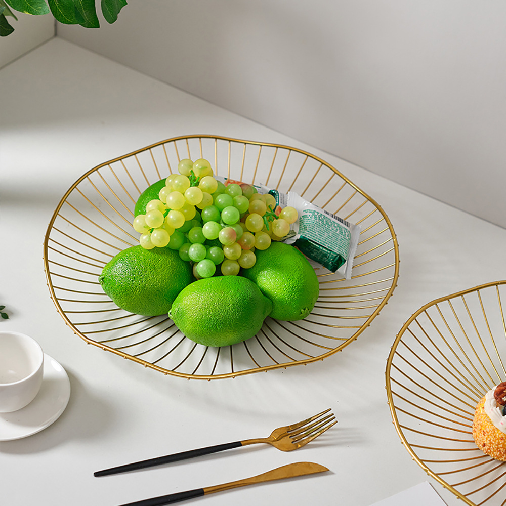 large flat fruit basket-gold