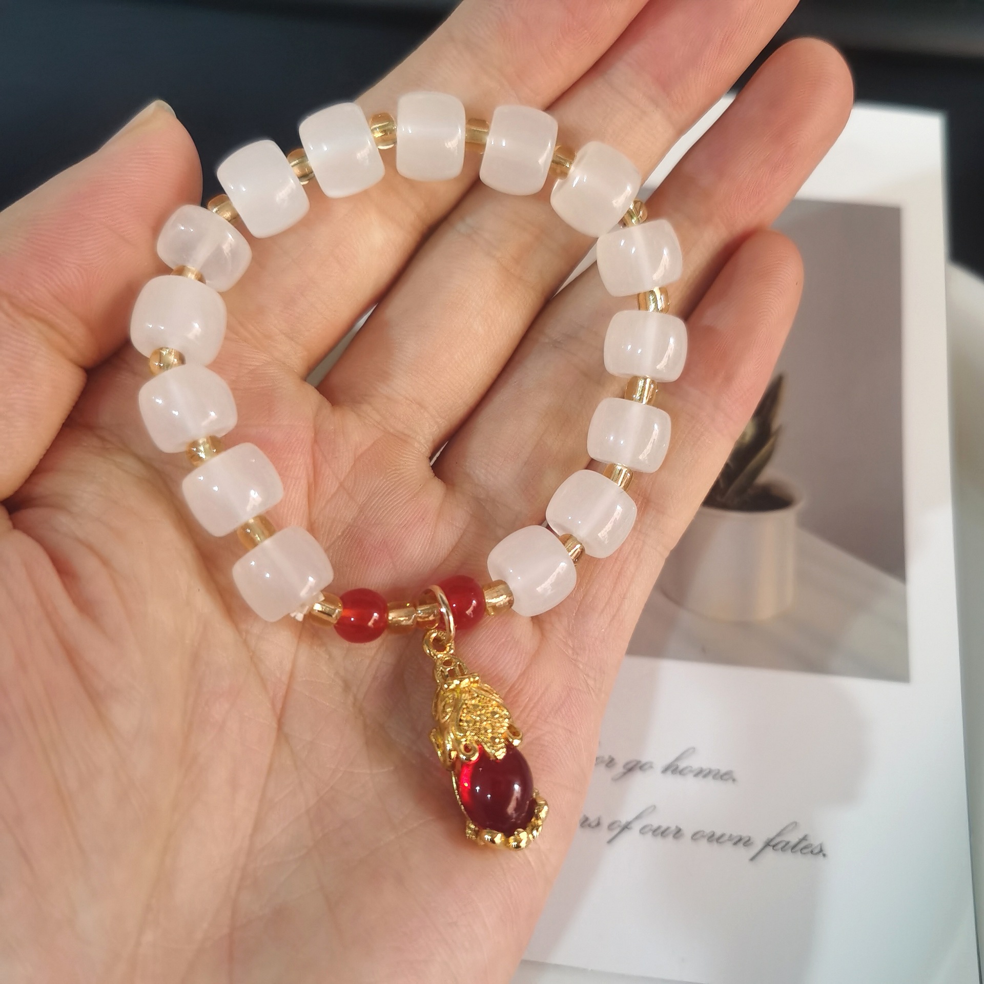 red bead fu character jade hare bracelet