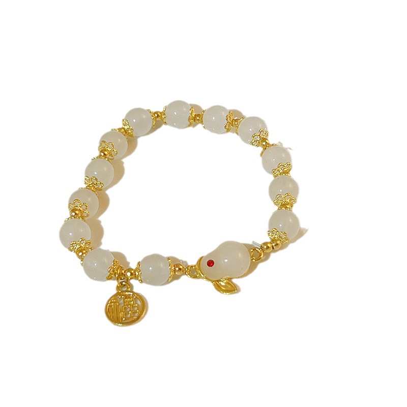 white pearl fu character jade hare bracelet
