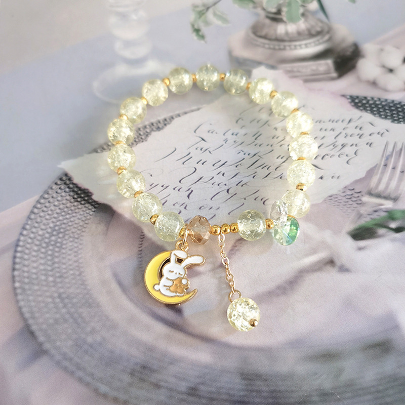 b05 yellow bead crescent moon jade hare bracelet