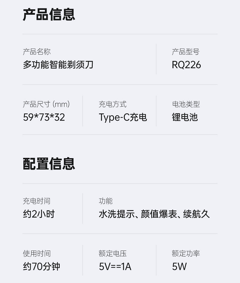 specifications: standard, standard + hair clipper, standard 2 boxes