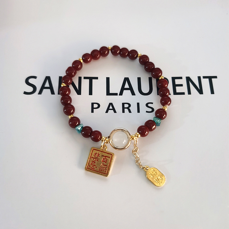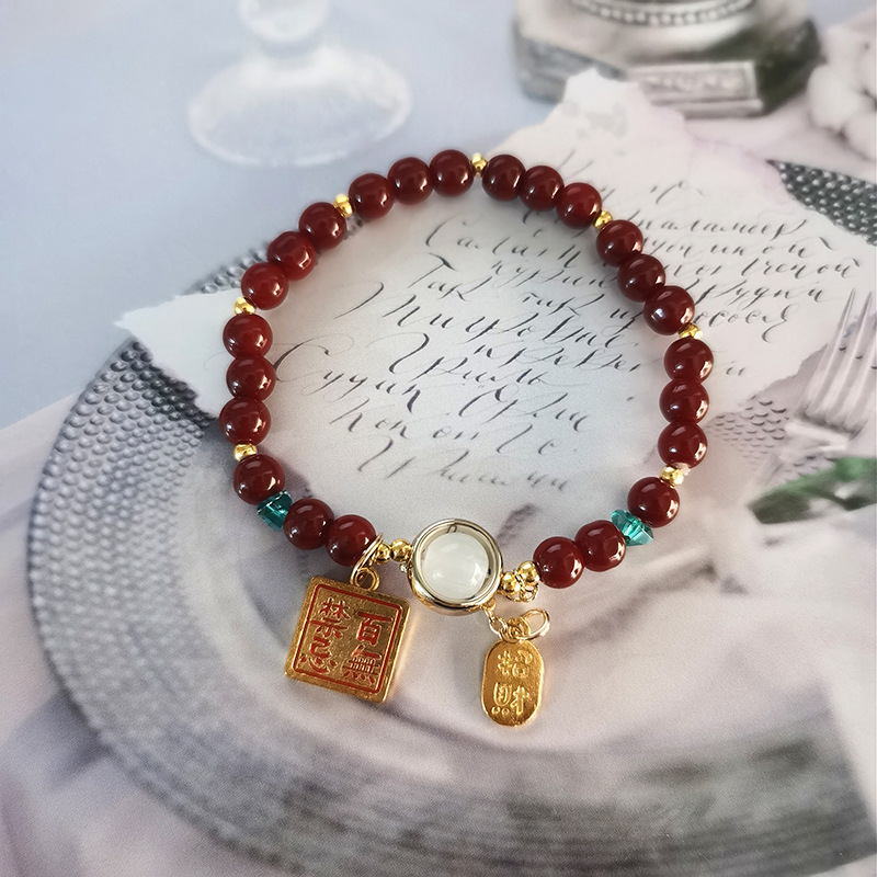 s467 8mm artificial cinnabar blessing card bracelet