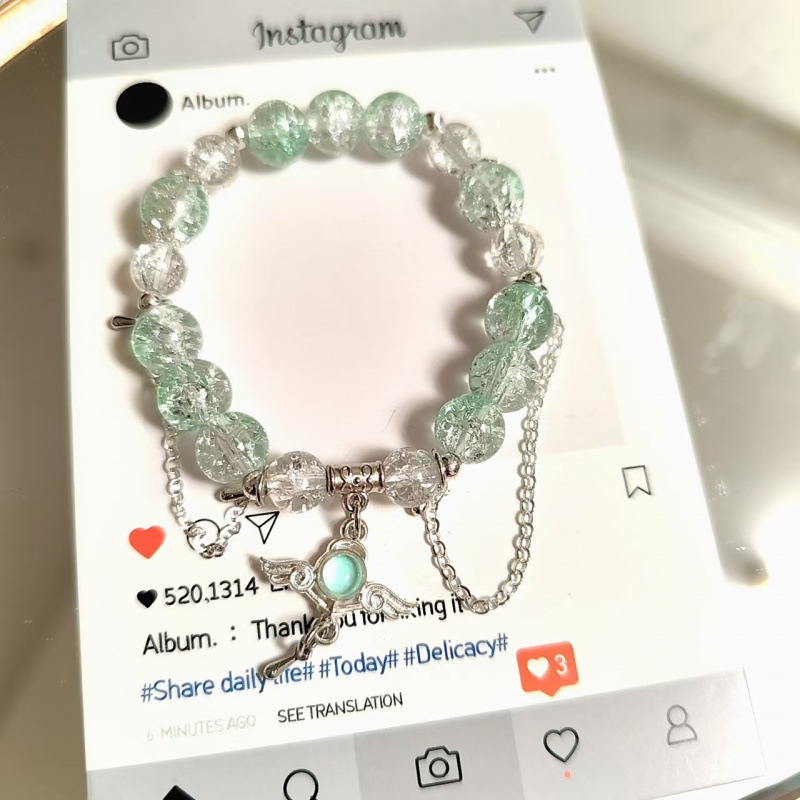 s899 peach blossom crystal feather bracelet pink and green