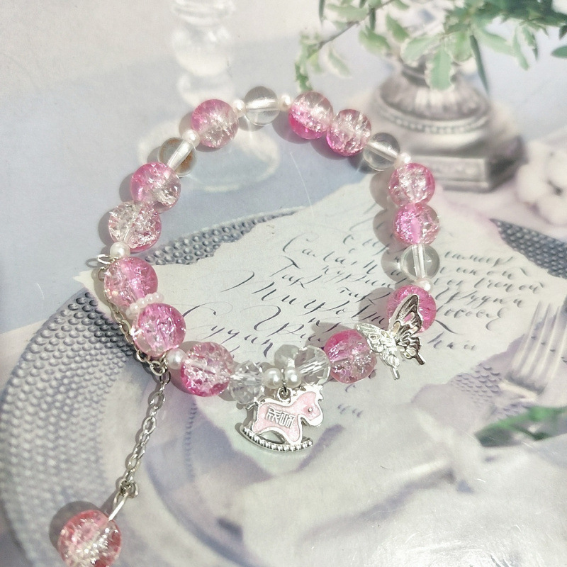 s909 copper coin lucky horse bracelet pink