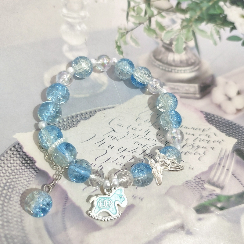s907 copper coin lucky horse bracelet light blue