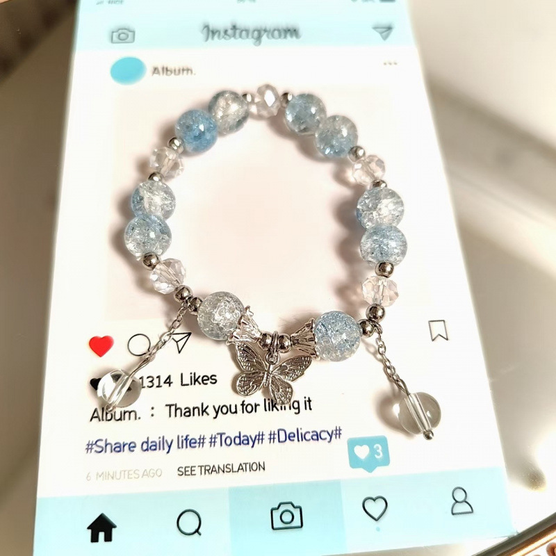 s171 blue bead floral pattern bent-strand butterfly bracelet