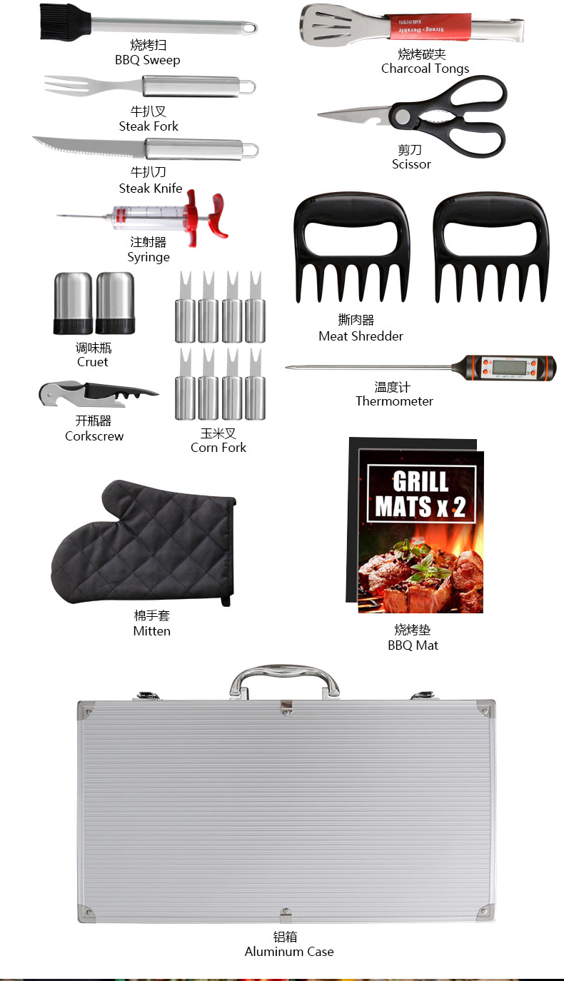 【Product Name】: Aluminum Case Grilling Tool Set 38-Piece