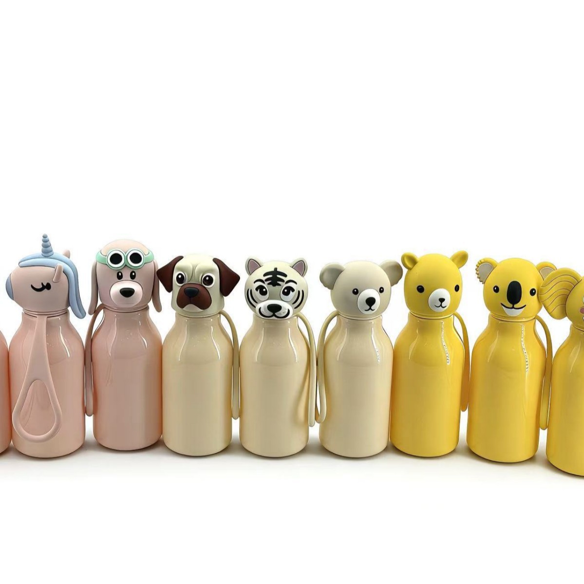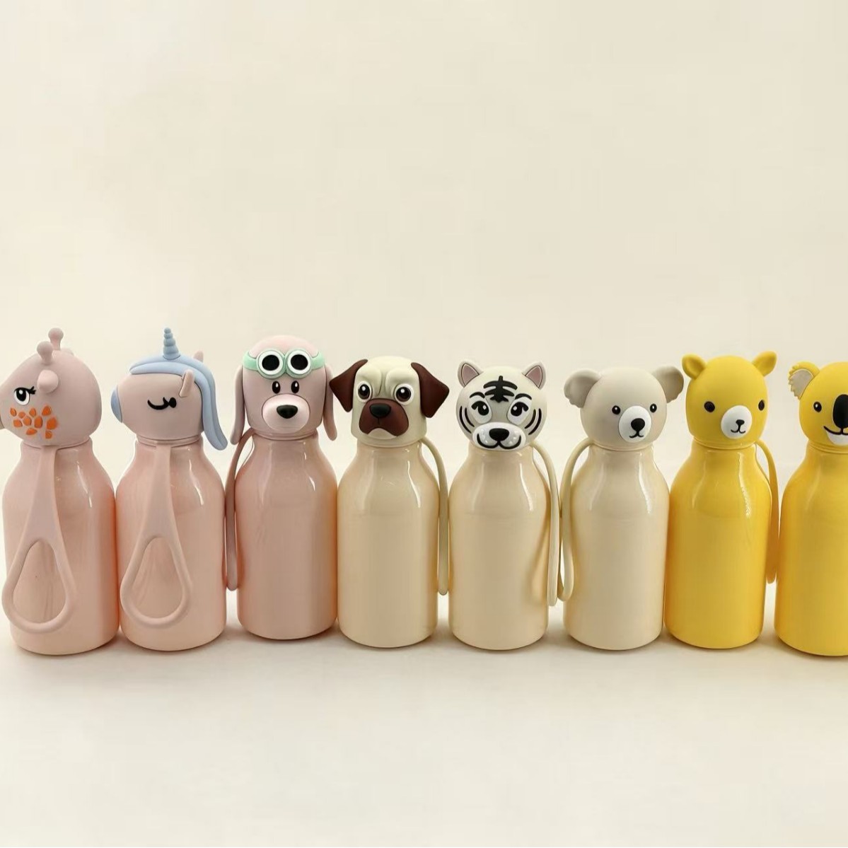 color: pony, giraffe, toy dog with glasses, elephant, koala, alpaca,