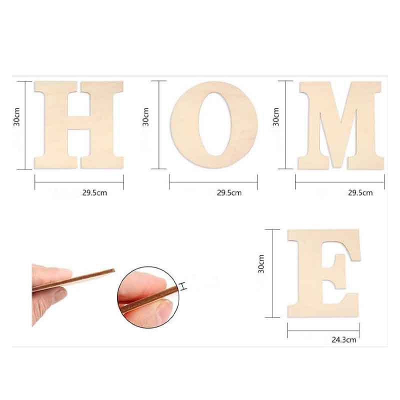 Dimension Information: Each "Home" wooden letter measures approximately 12 x 12 inches / 30 x 30 cm. The width of the letter "E" is 9.85 inches / 25 cm, and the thickness is 0.12 inches. Please carefully check the dimensions before purchasing.