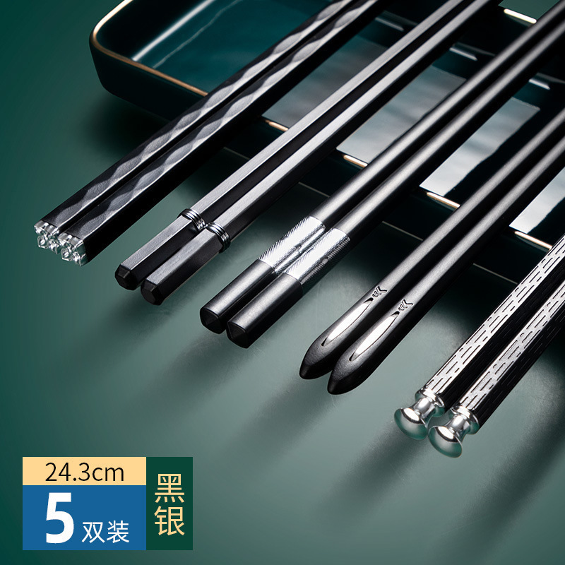 black and silver simple 5 pairs