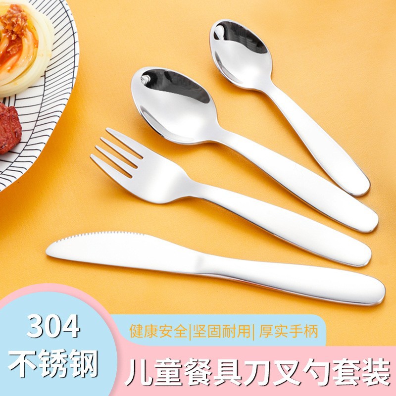 304 stainless steel child fork and spoon, household spoon for eating, dessert feeding, spoon for baby, short-handle tableware, spoon
